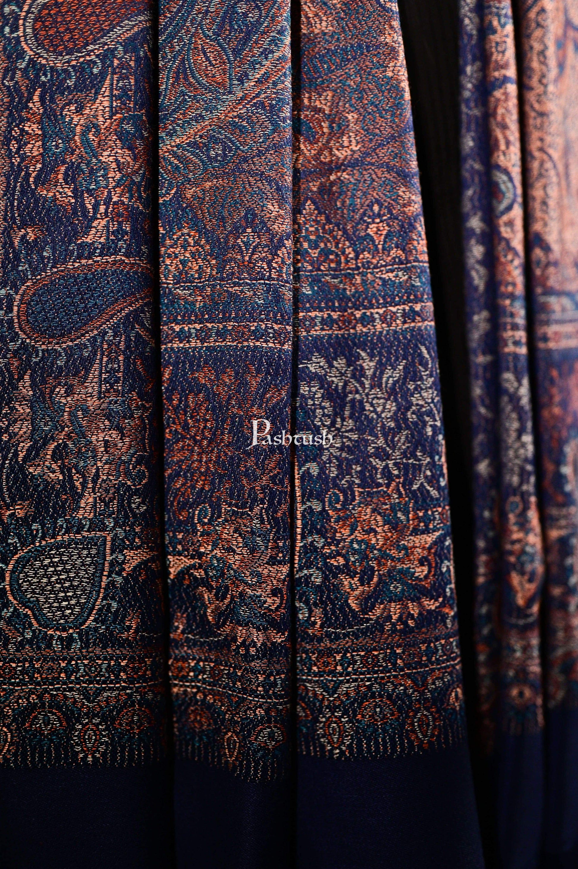 Pashtush Mens Jamawar Stole, Fine Soft Ethnic Stole Navy Blue
