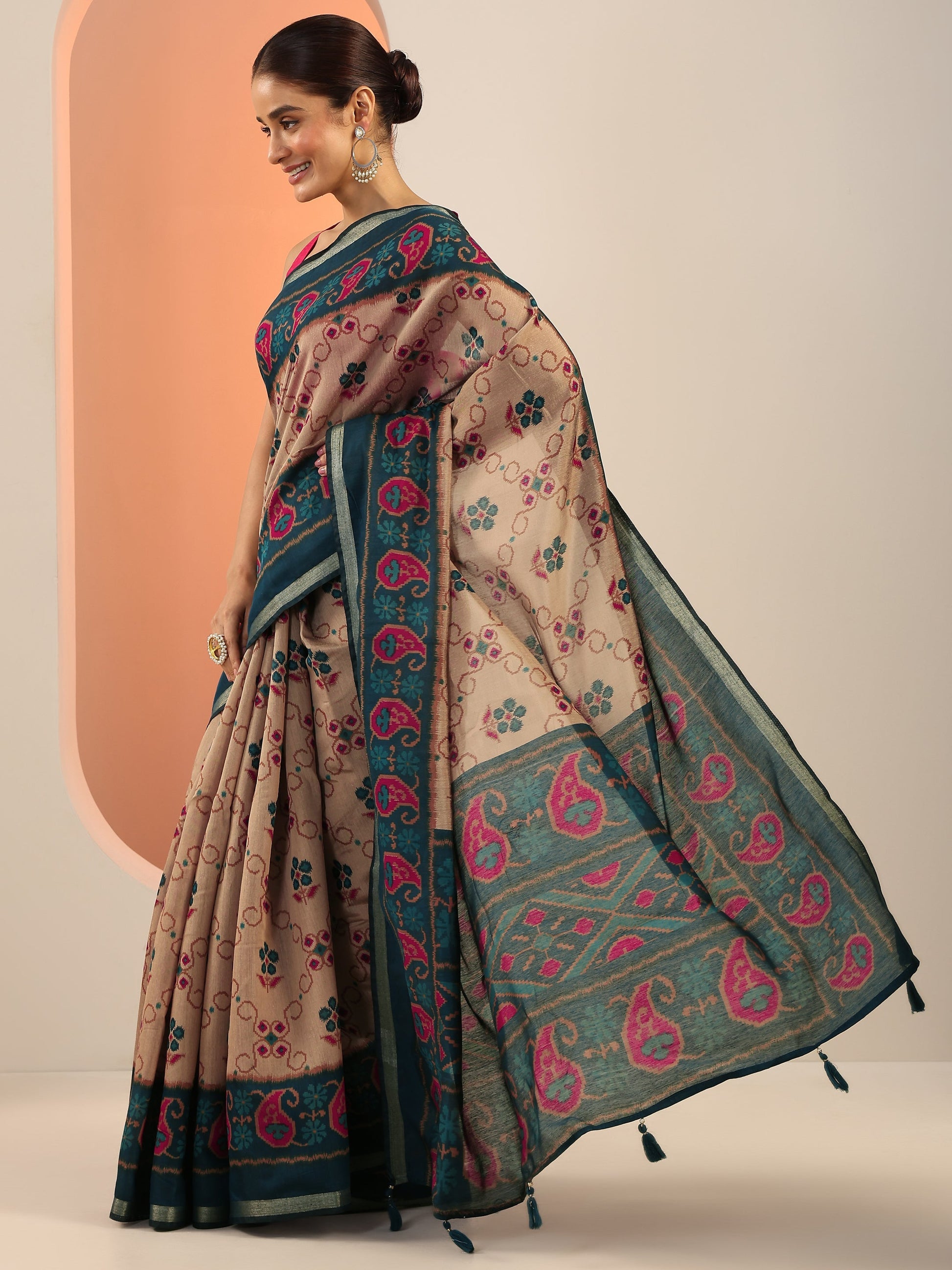 Our Beige Printed Cotton Blend Saree Features Captivating Floral Printed Print. Complemented With An Unstitched Blouse Piece. This Charming Saree Is Perfect For Festive Wear