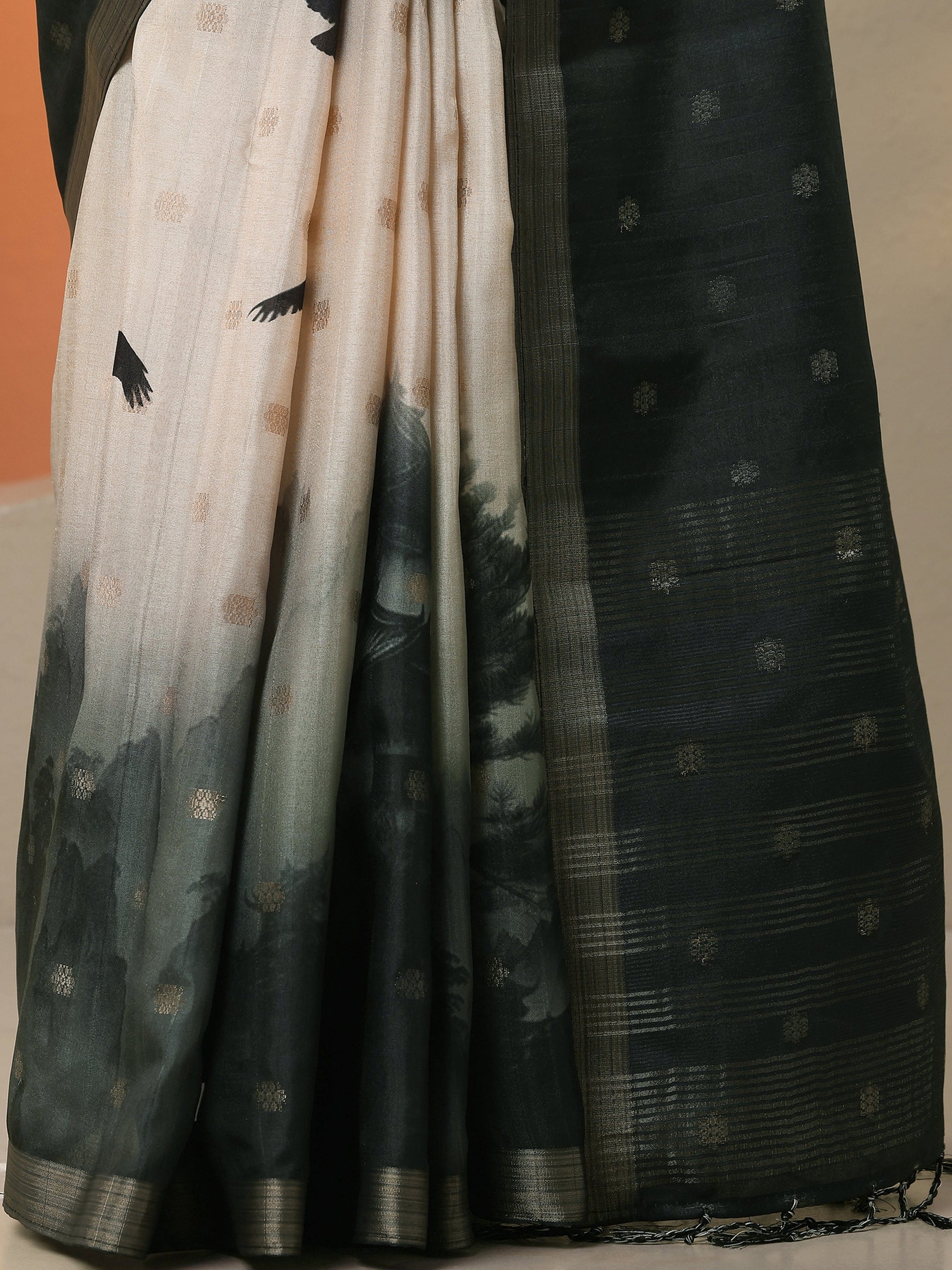Beige Printed Silk Blend Saree With Unstitched Blouse Piece