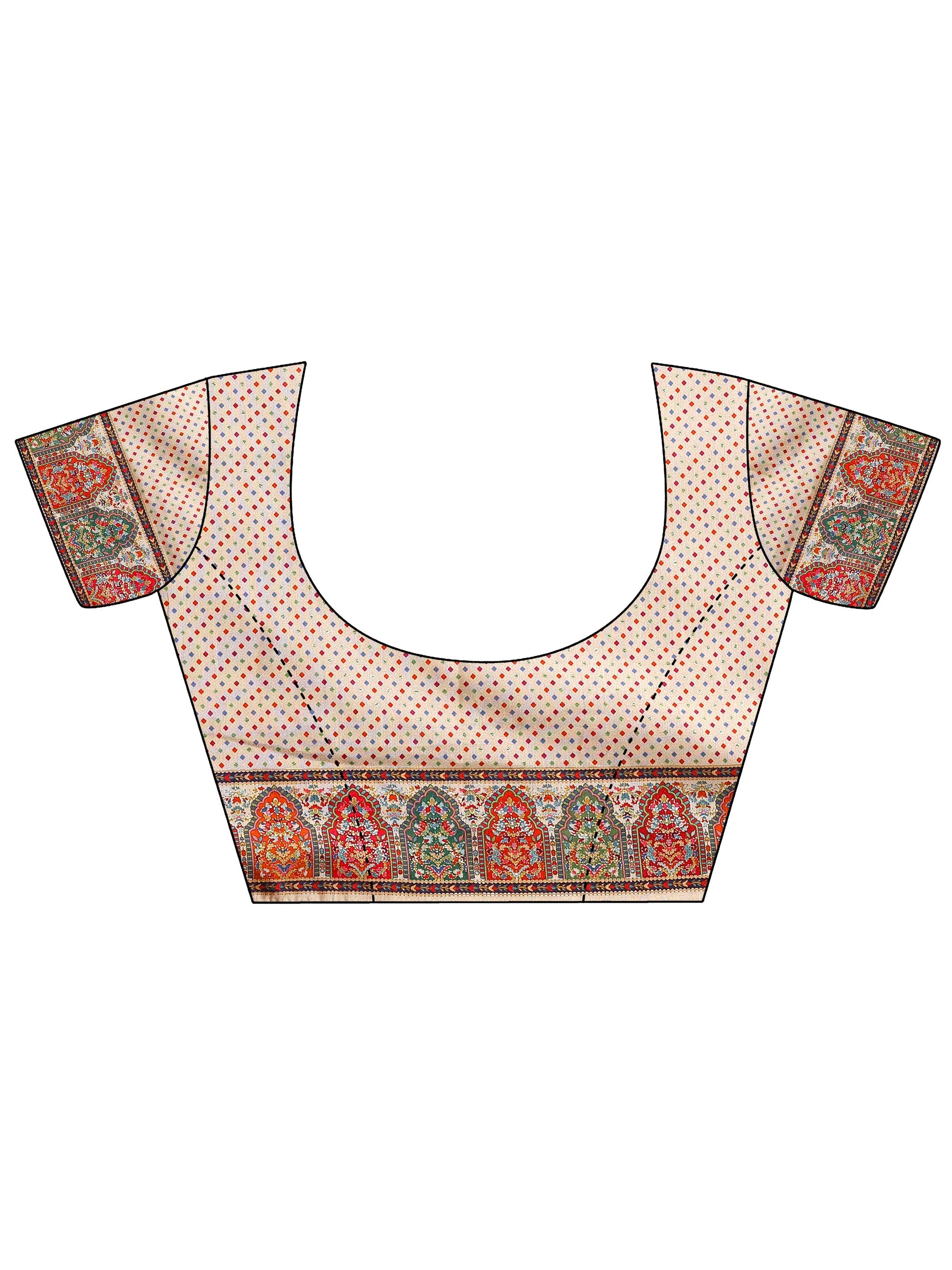 Beige Printed Silk Blend Saree With Unstitched Blouse Piece