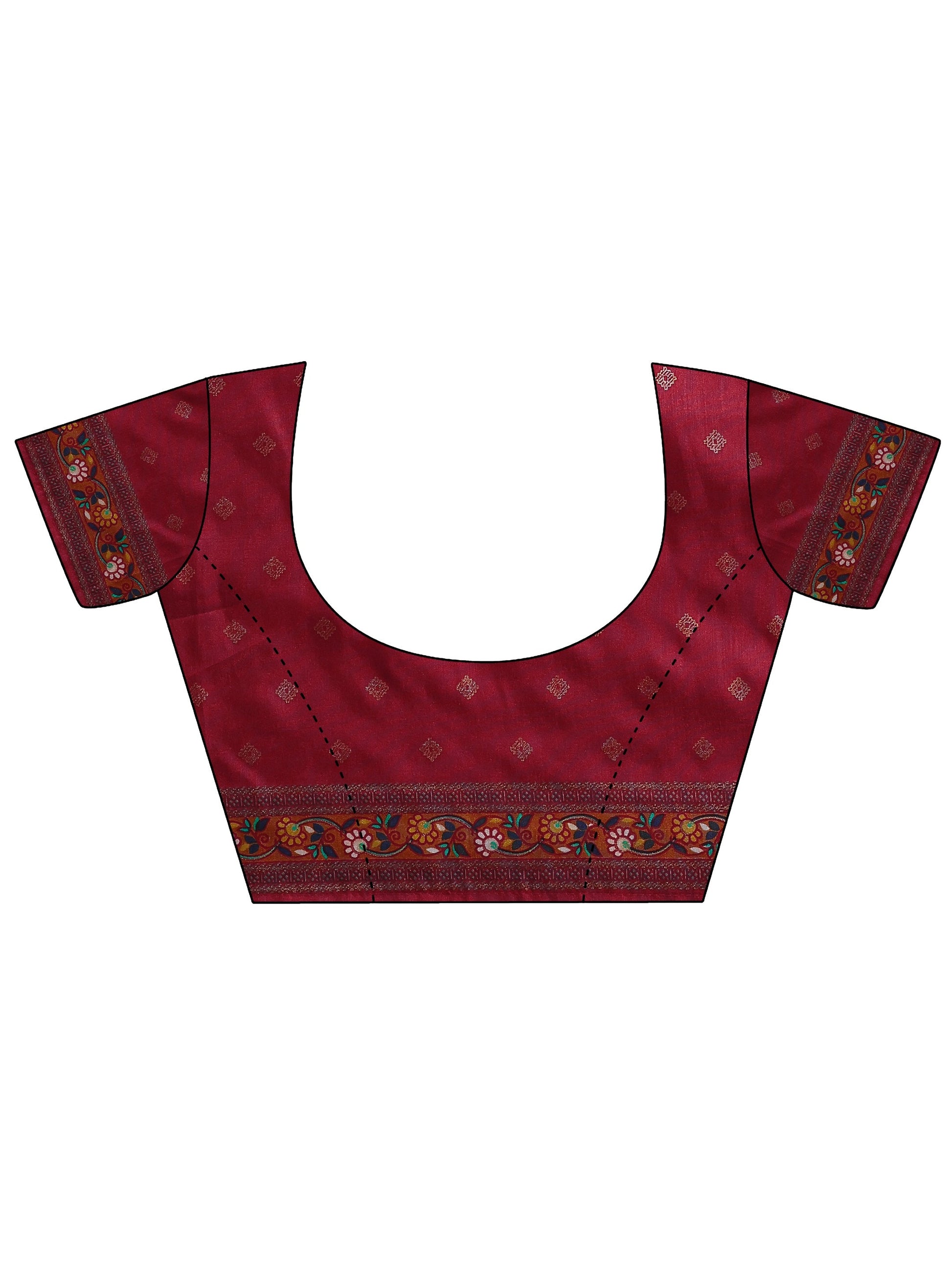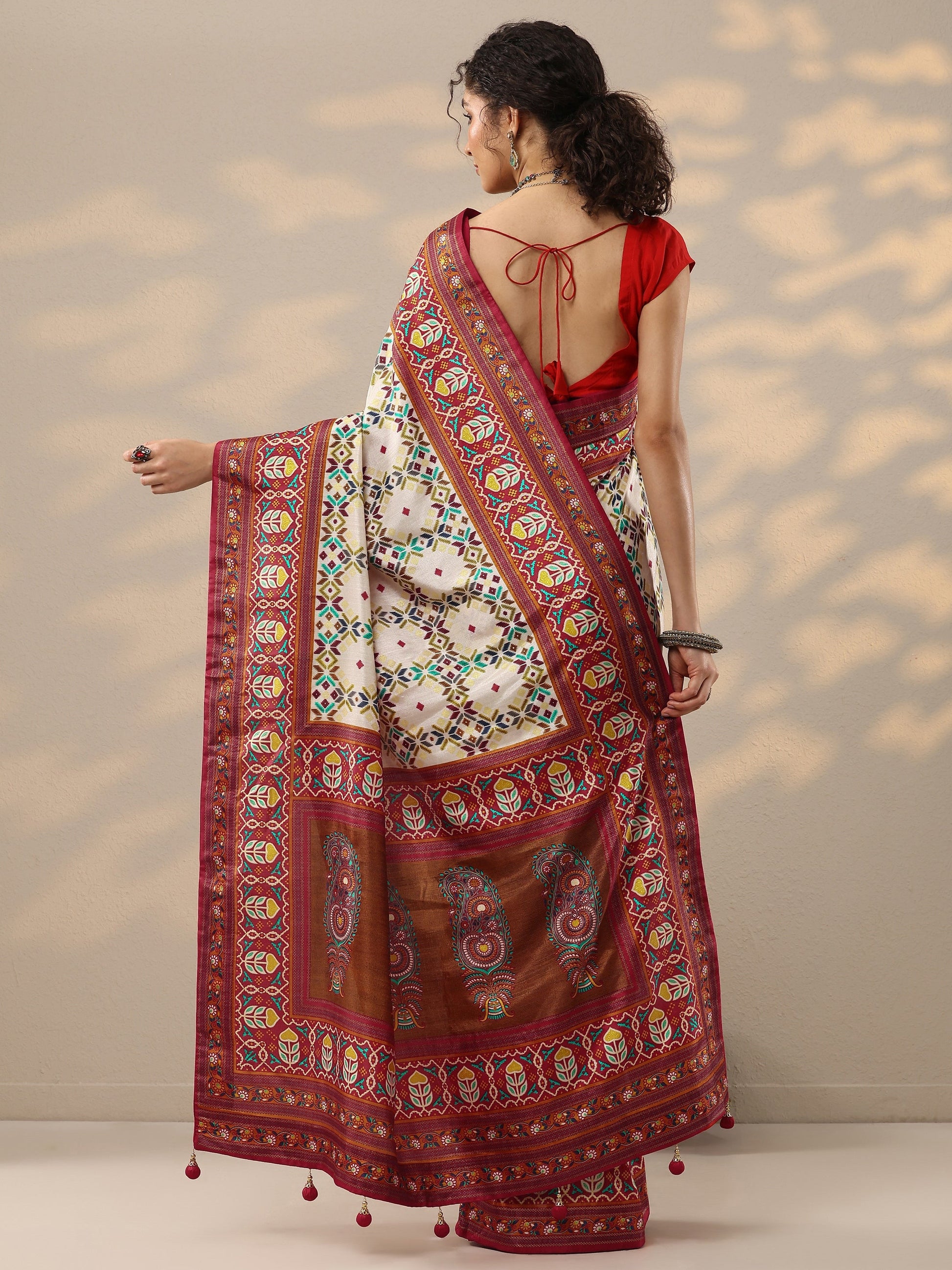Beige Printed Silk Blend Saree With Unstitched Blouse Piece