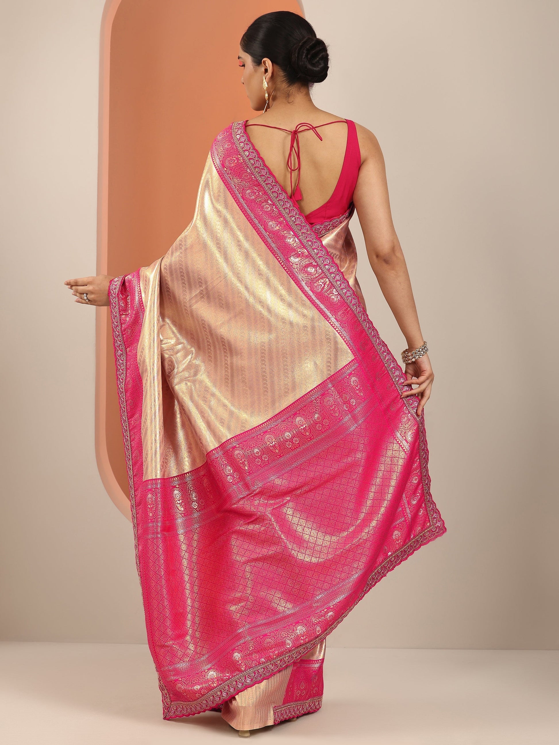 Beige Silk Blend Saree With Unstitched Blouse Piece