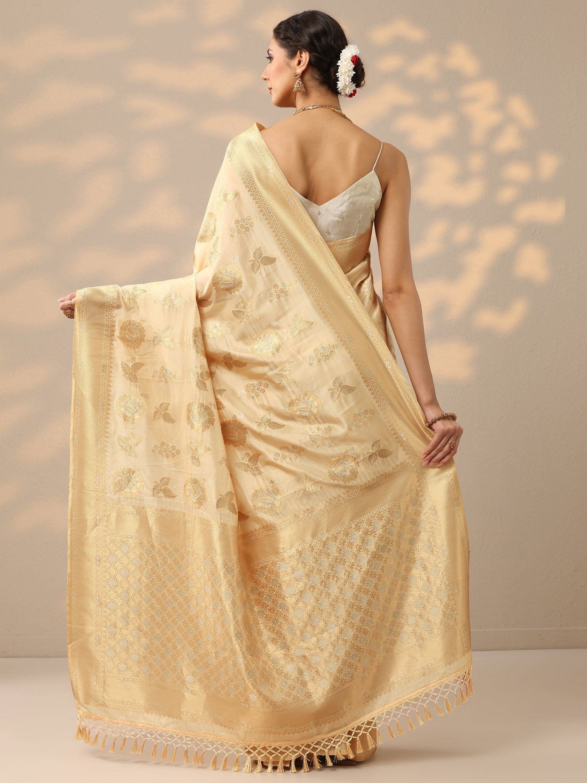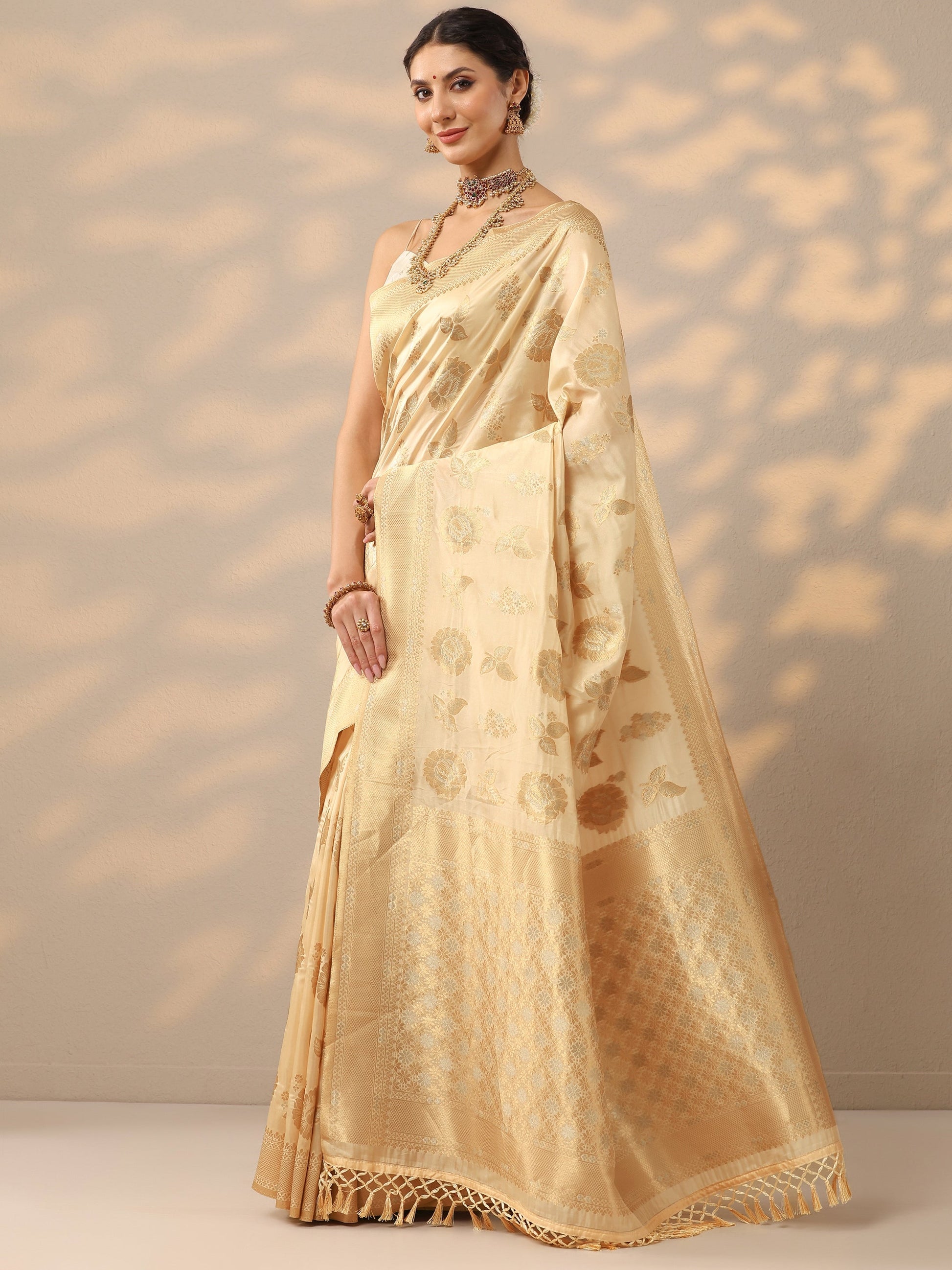 Beige Woven Design Banarasi Silk Blend Saree With Unstitched Blouse Piece