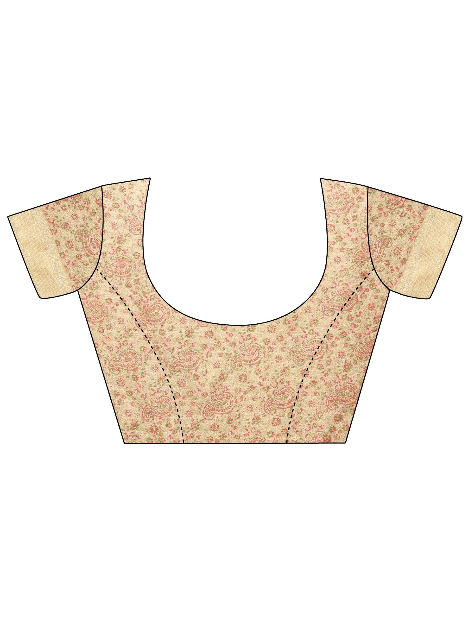 Our Beige Printed Silk Blend Saree Features Captivating Floral Print. Complemented With An Unstitched Blouse Piece. This Charming Saree Is Perfect For Festive Occasions