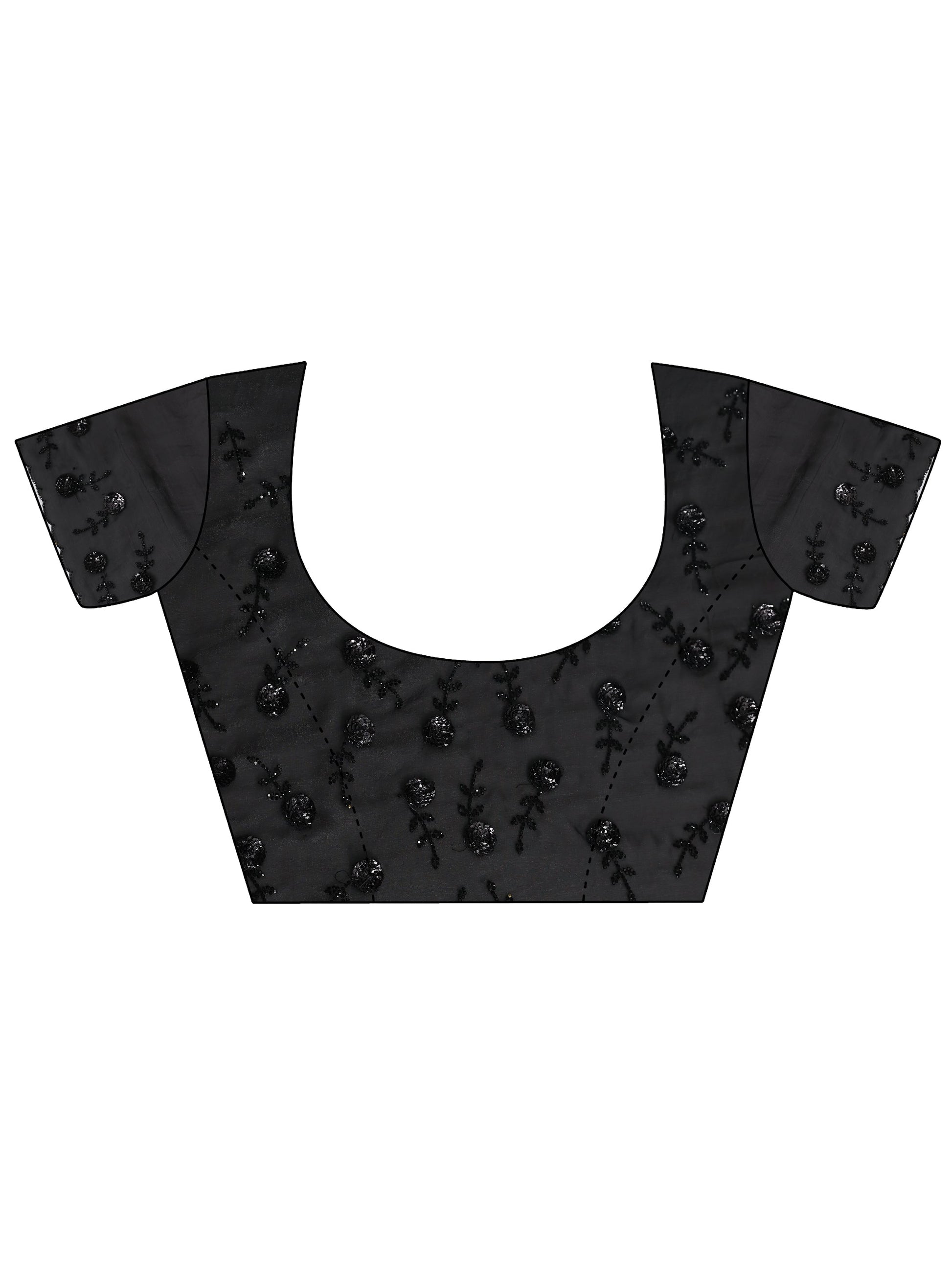 Black Embellished Satin Sarees With Unstitched Blouse Piece
