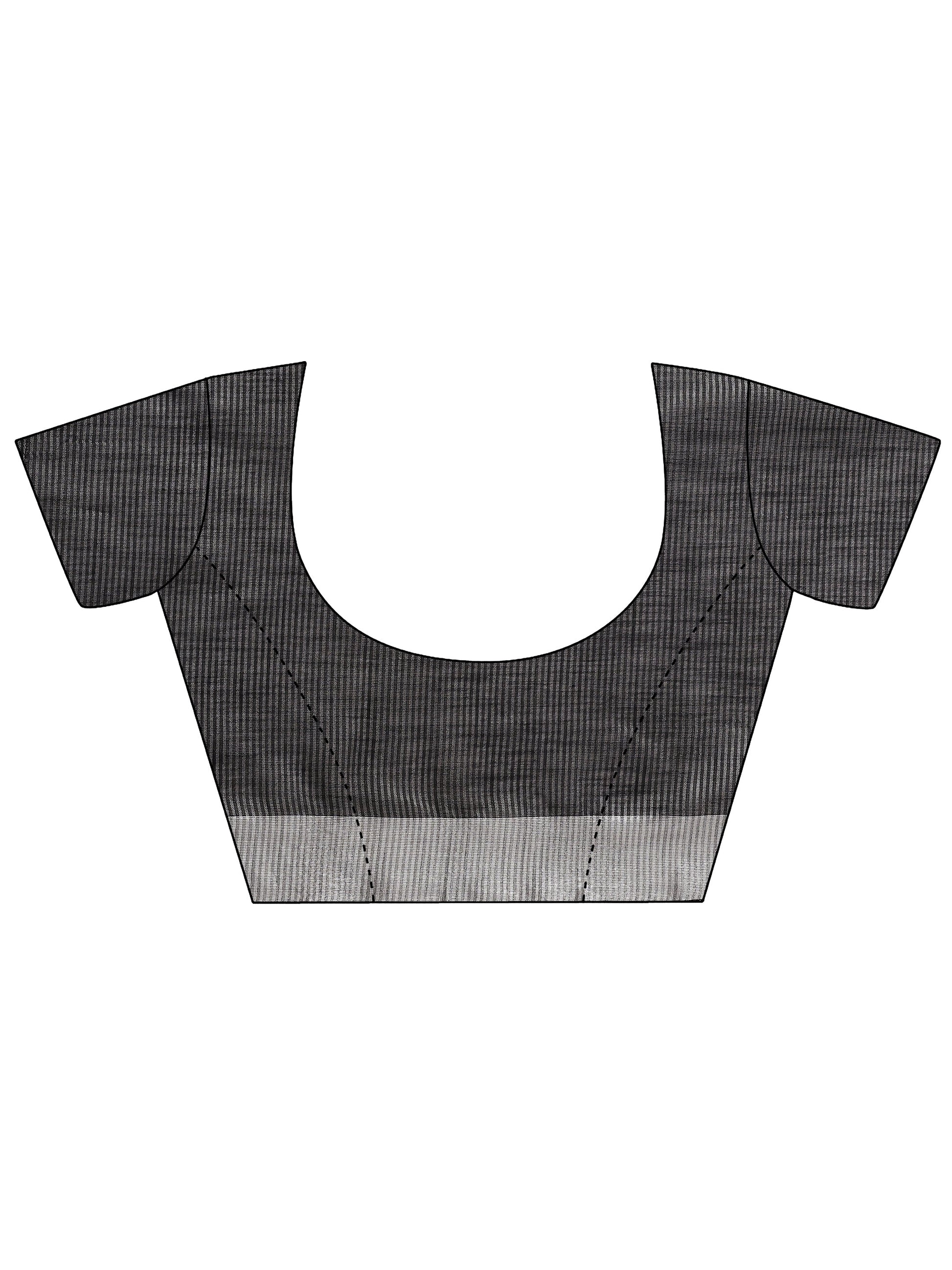 Black Embroidered Cotton Blend Sarees With Unstitched Blouse Piece