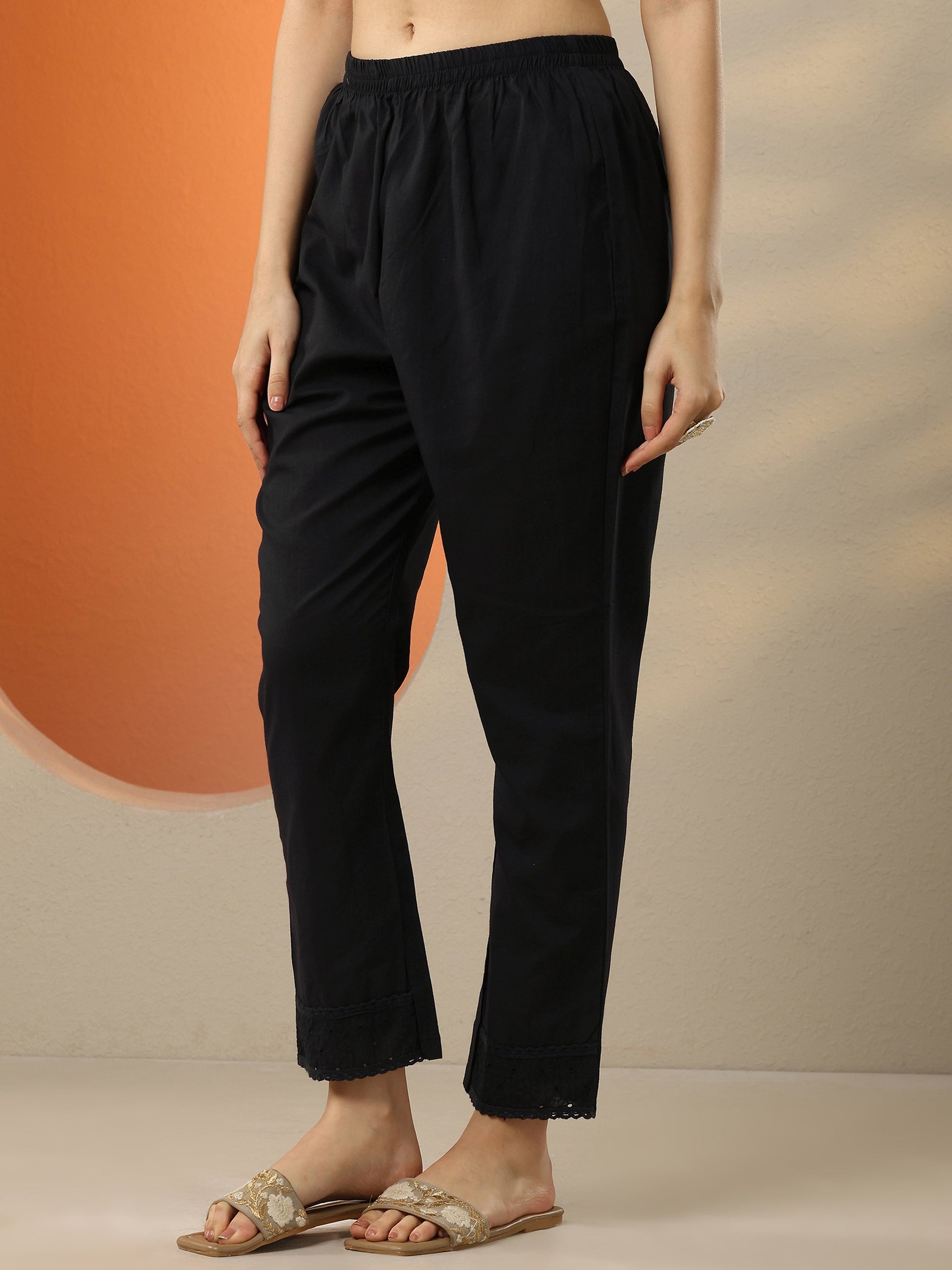 Our 3-piece Black Cotton Straight-Fit Kurta Set features a Round Neckline, Regular Sleeves, and statement yoke. Complemented with Straight Pants with a Partially Elasticated waistband and 2 pockets, and an Embroidered dupatta. Adorned with Floral Embroidered, this style is perfect for Dark Festive.