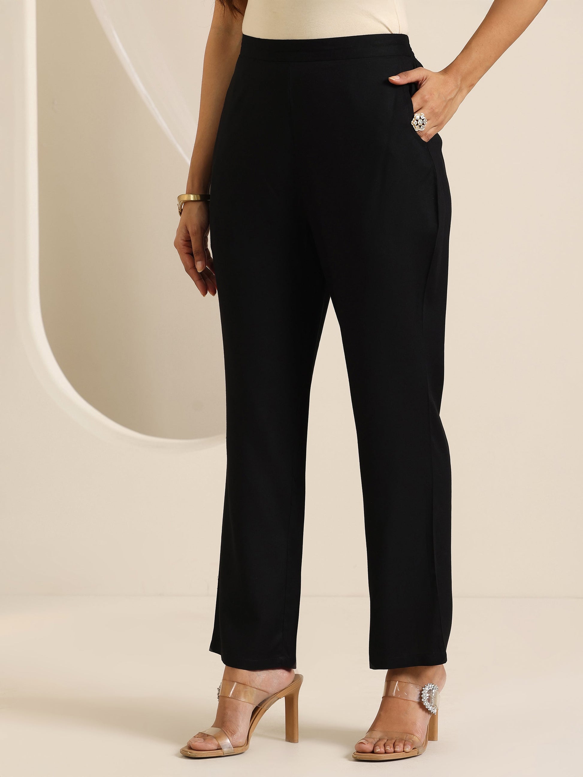 Our 3-piece Black Viscose Rayon Kurta Set features a Straight-fit kurta with a Round Neckline, Regular Sleeves, and statement yoke. Complemented with Straight Pants with a partially Elasticated waistband and 2 pockets, and a Printed dupatta. Adorned with Embroidered, Solid accents, this style is perfect for Semi Festive occasions.