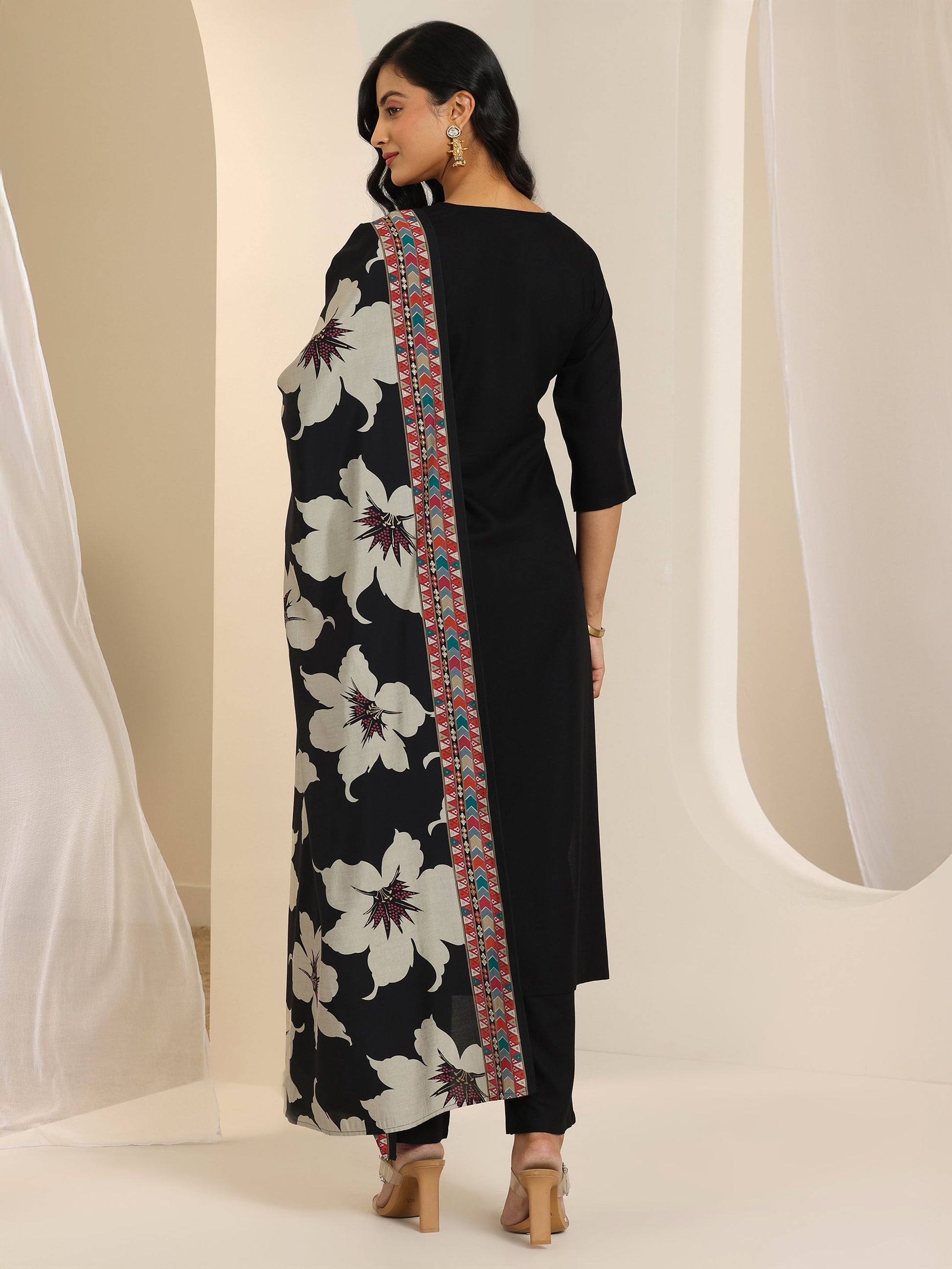 Black Embroidered Viscose Rayon Straight Suit Set With Dupatta