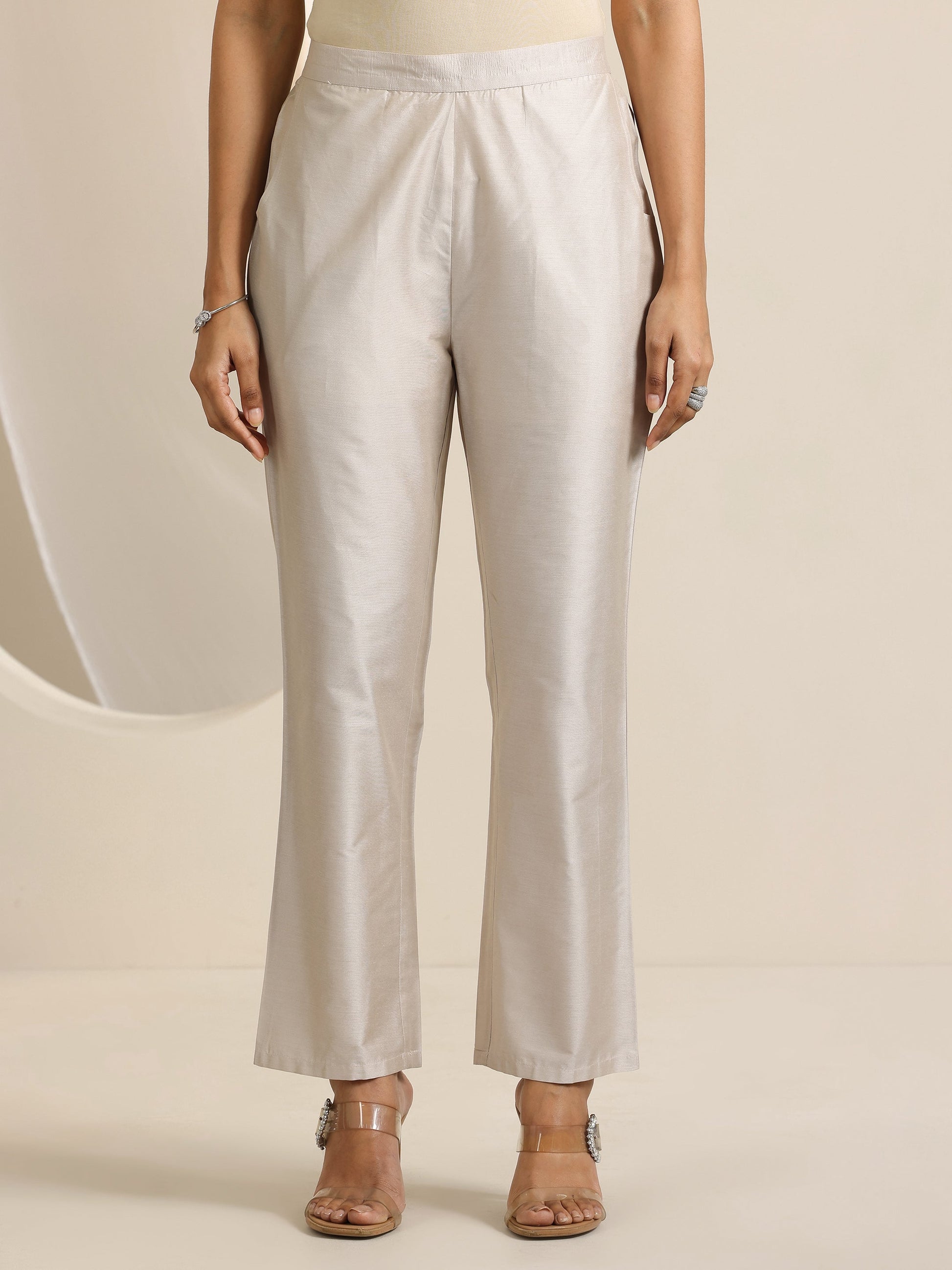 Our 3-piece off-white silk blend kurta set features a straight-fit kurta with a keyhole neckline, regular sleeves, and statement yoke. Complemented with straight pants with a partially elasticated waistband and a printed dupatta. Adorned with printed embellishments, this style is perfect for semi-festive occasions.