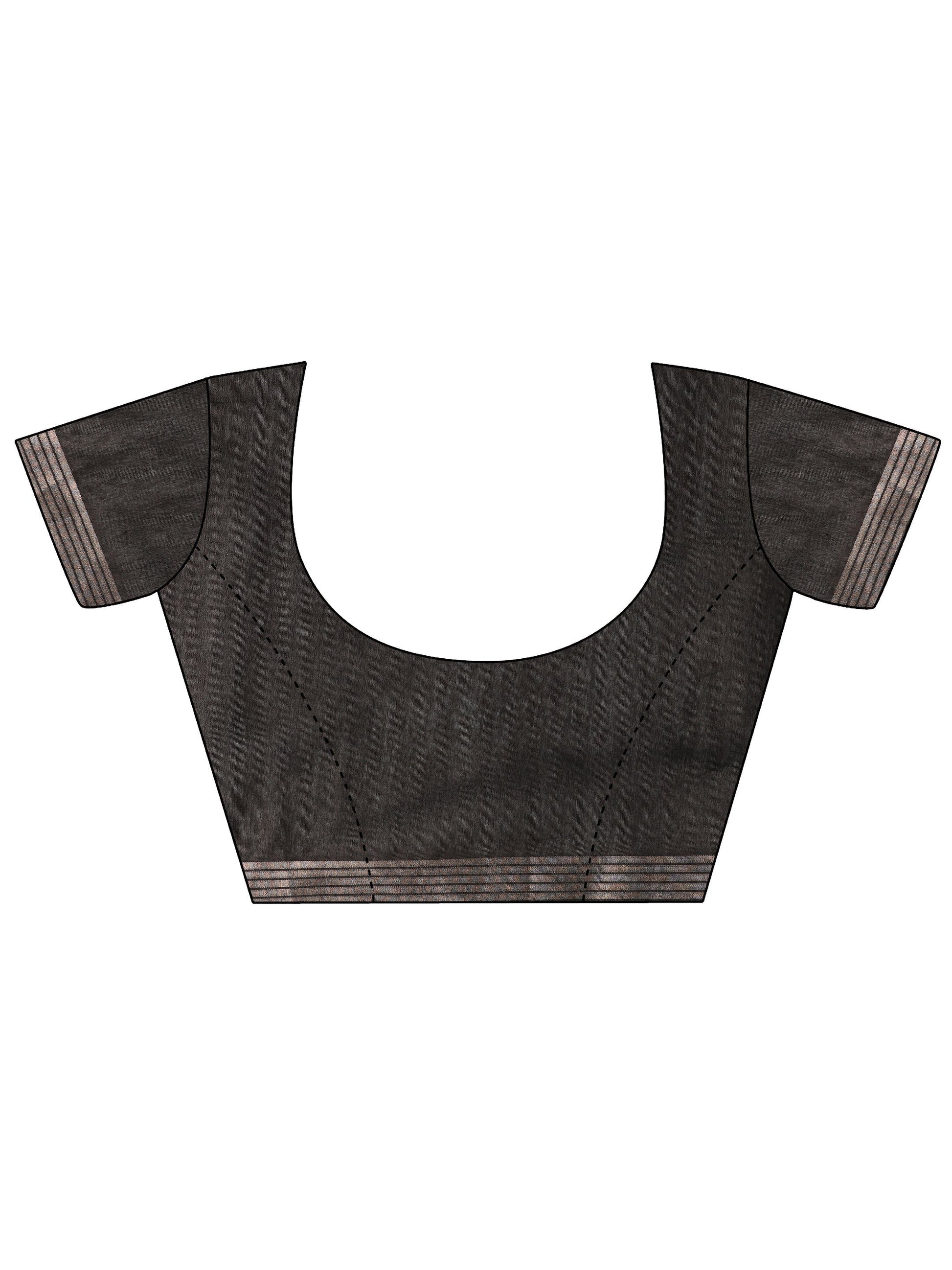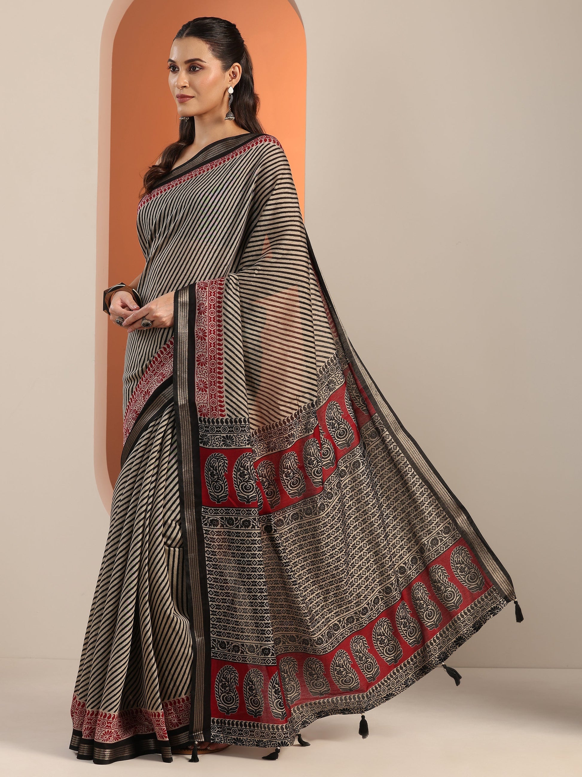Black Printed Cotton Blend Saree With Unstitched Blouse Piece