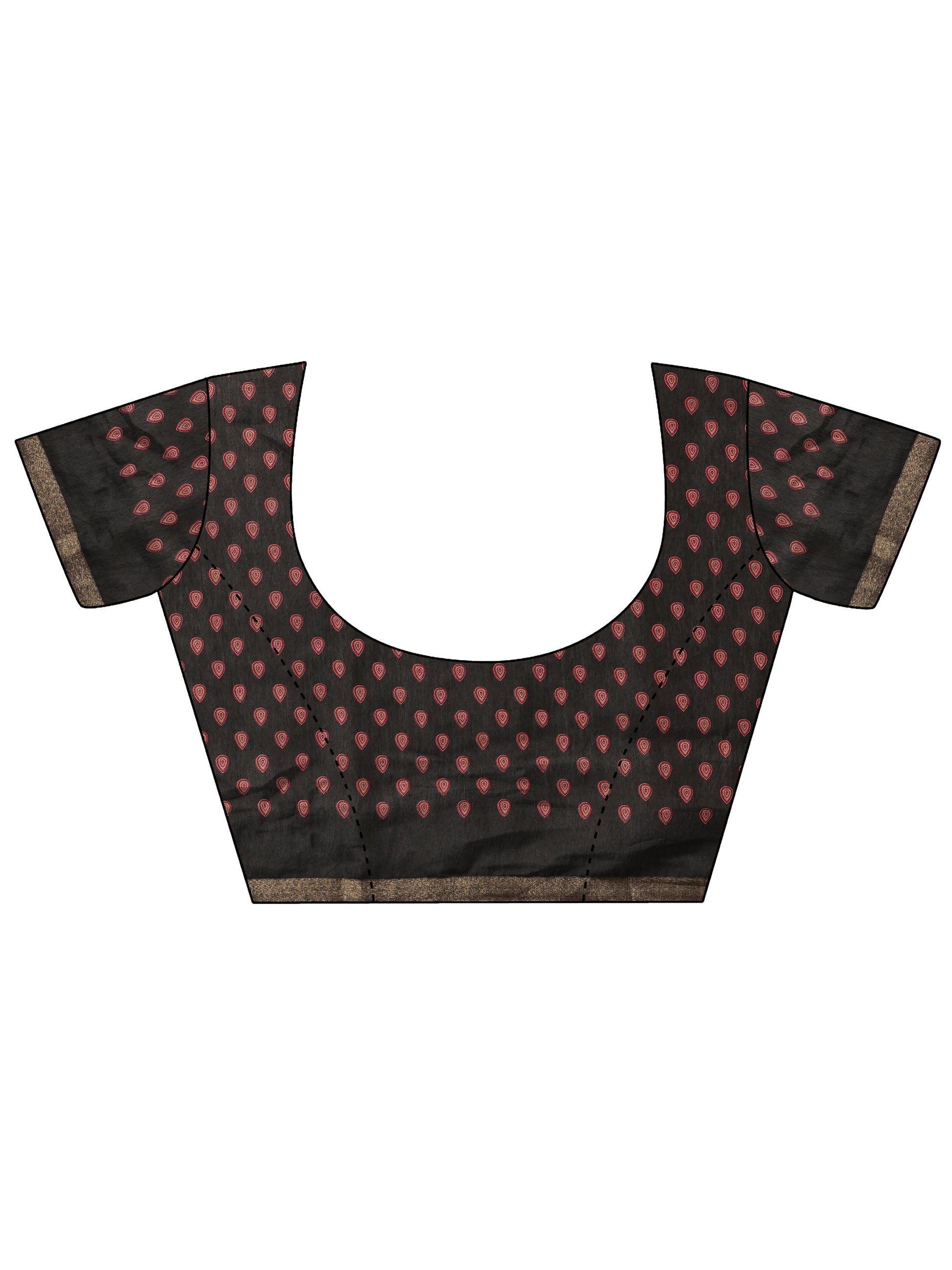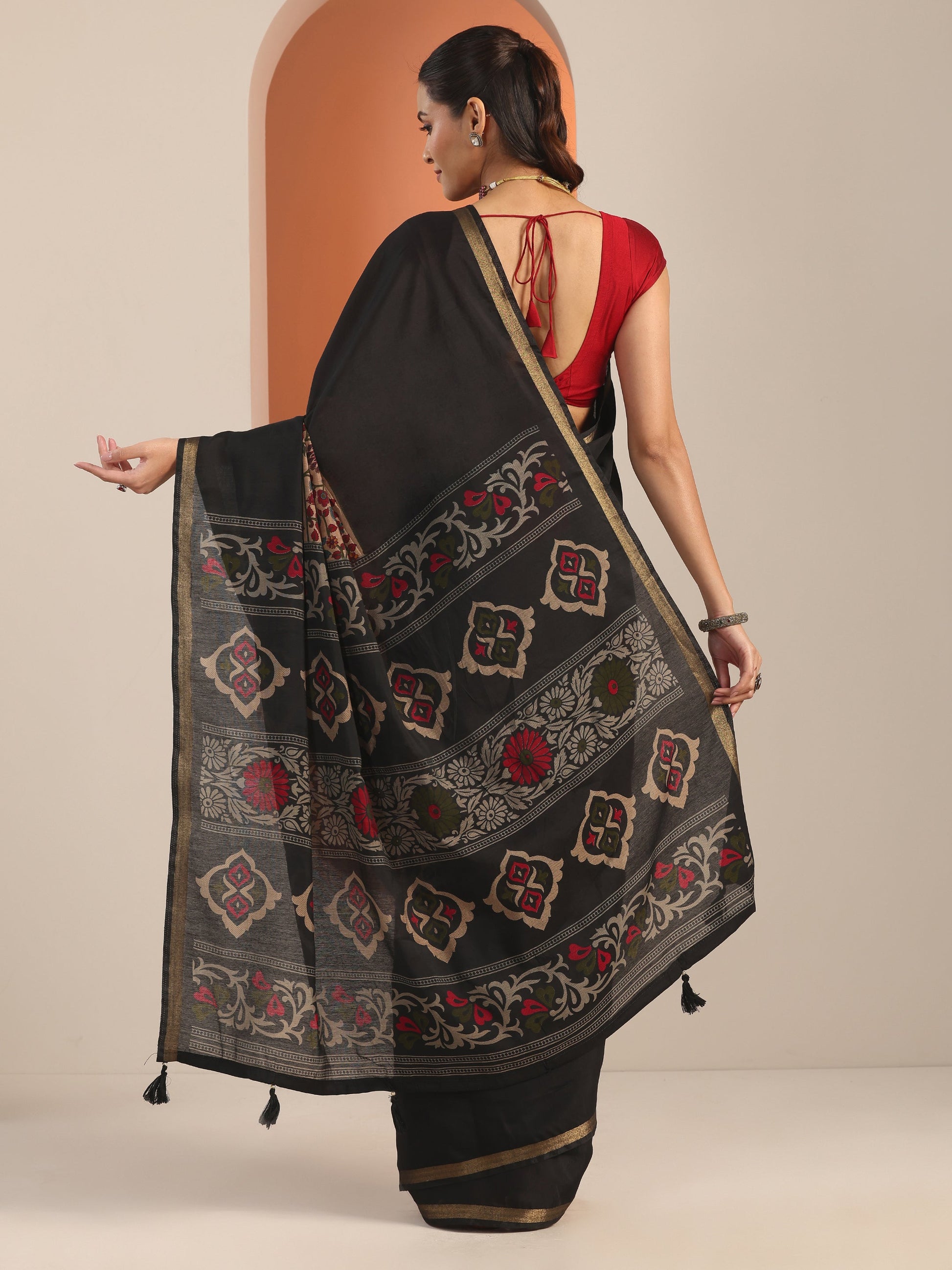 Black Printed Cotton Blend Saree With Unstitched Blouse Piece