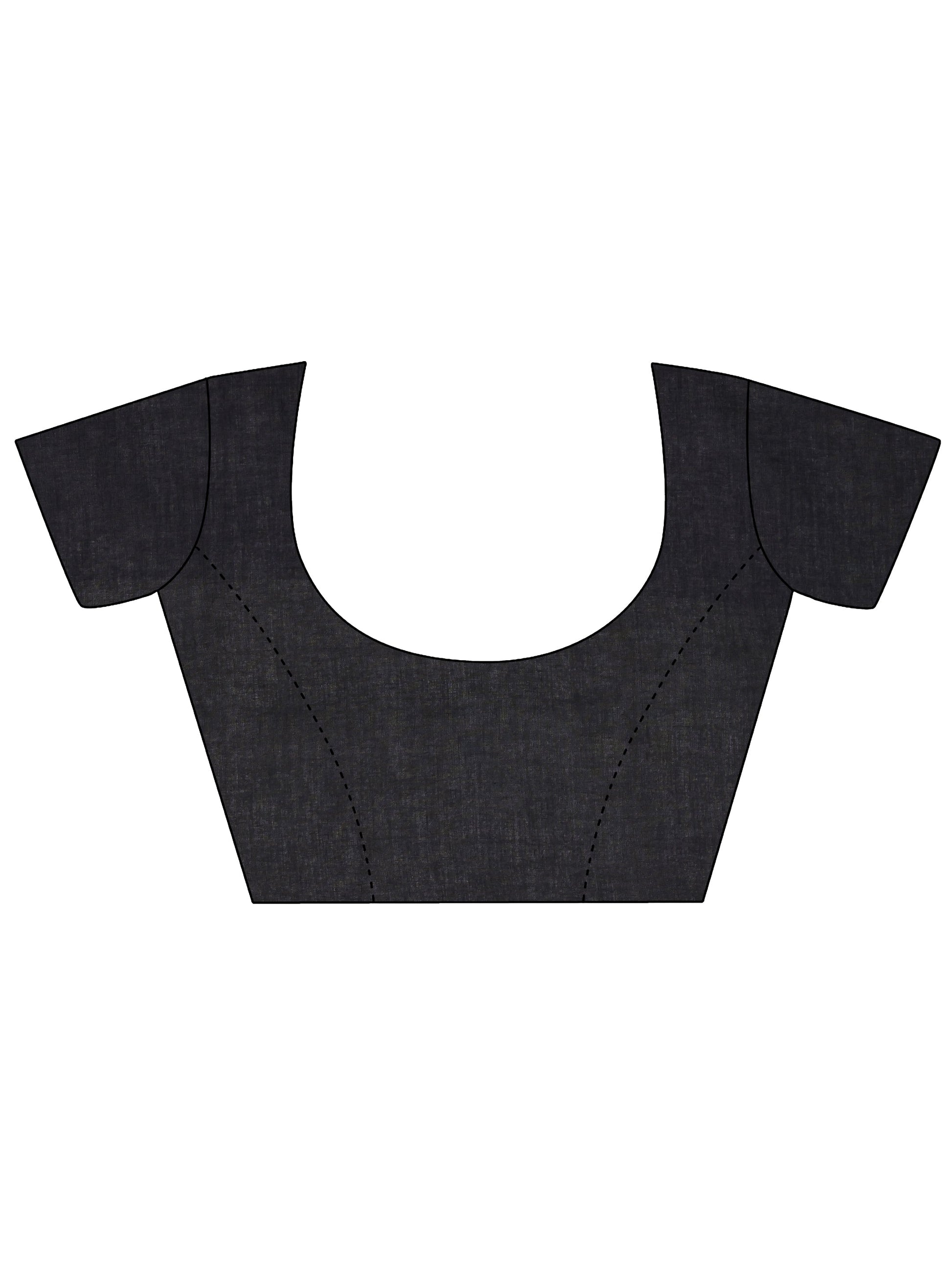 Black Printed Cotton Saree With Unstitched Blouse