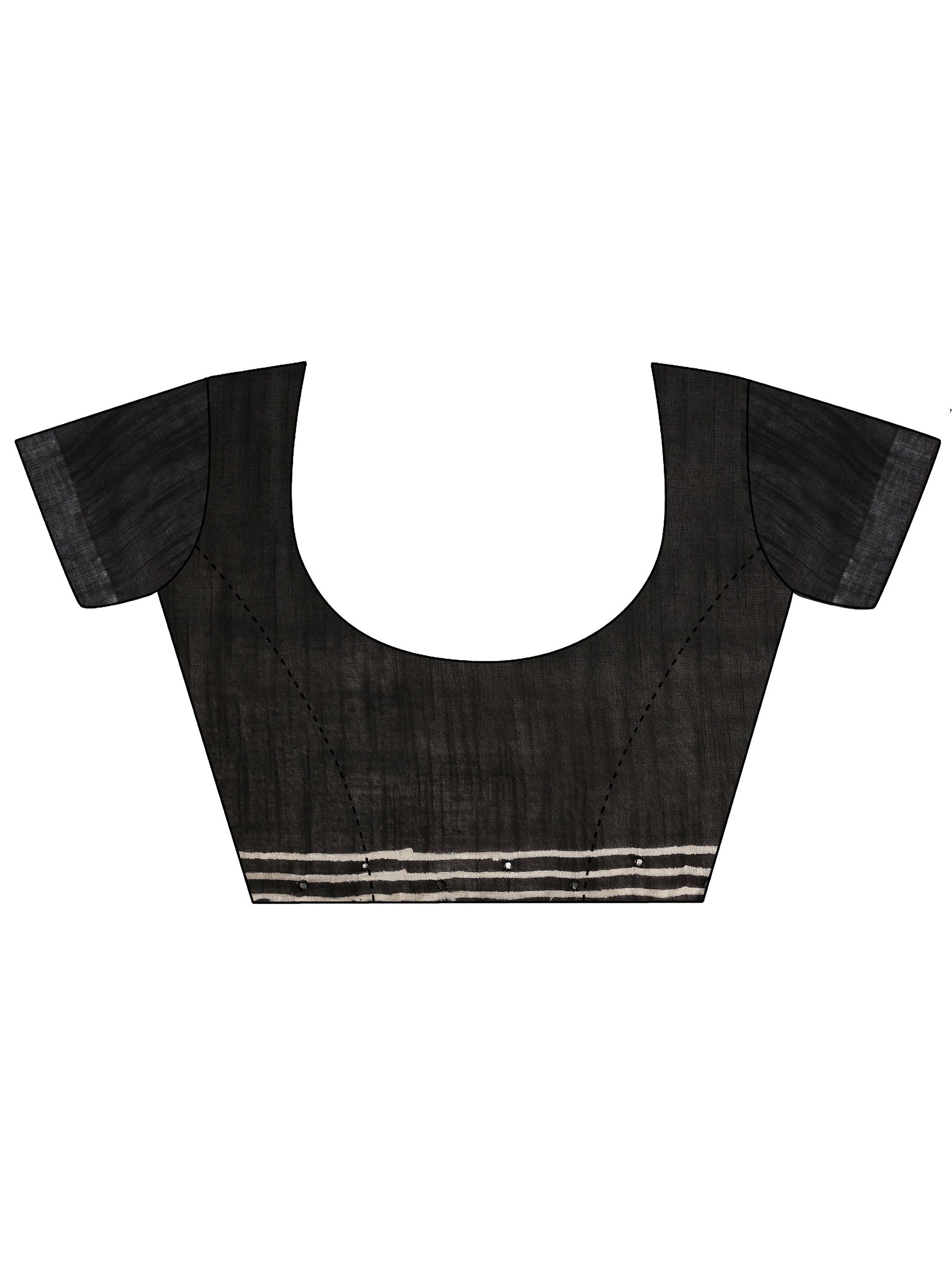 Black Printed Cotton Saree With Unstitched Blouse Piece