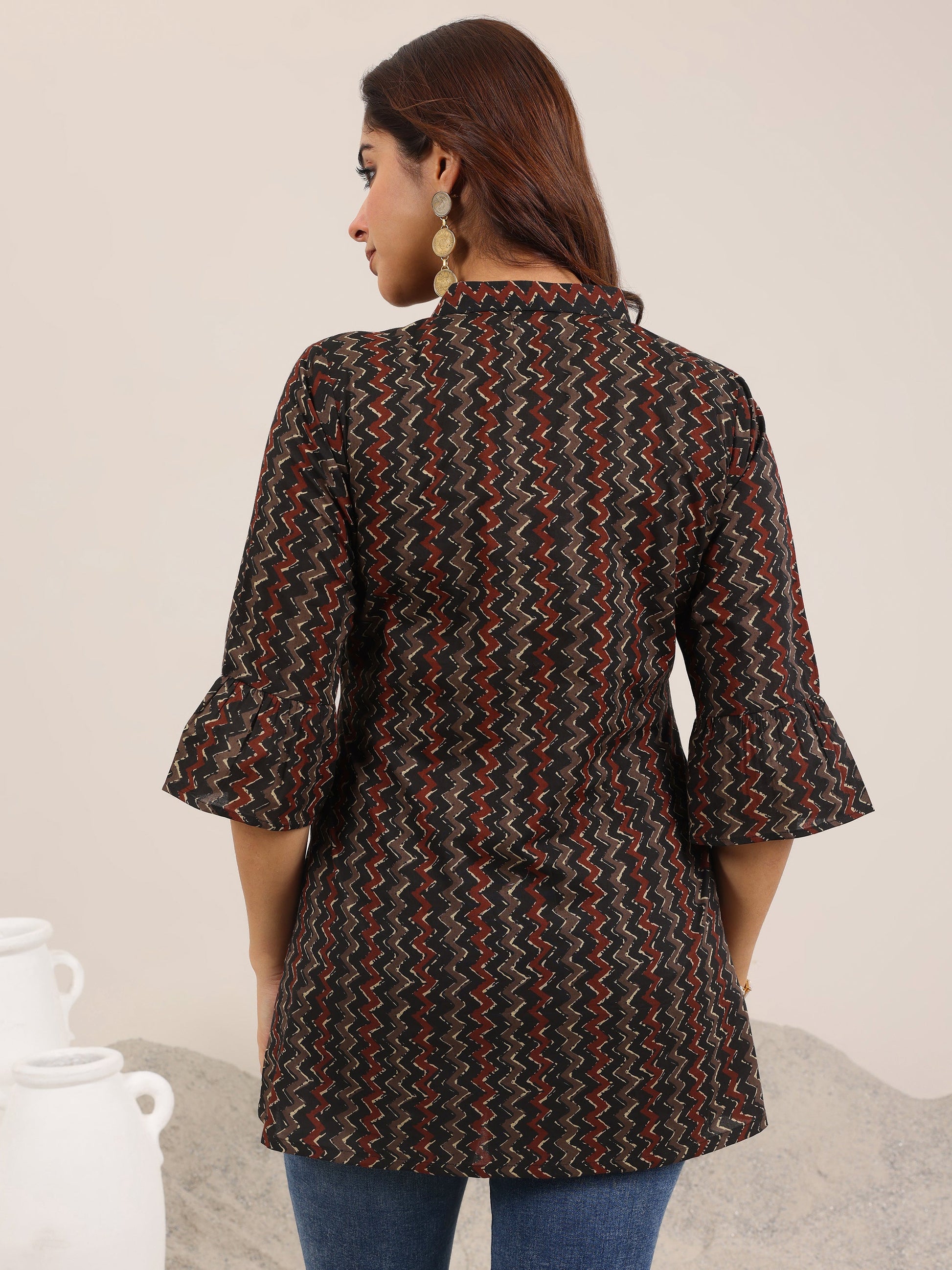 Our 1-piece black and red cotton straight-fit kurta features a mandarin collar neckline, regular sleeves, and statement Yoke. Adorned with chevron printed design, this style is perfect for casual wear.