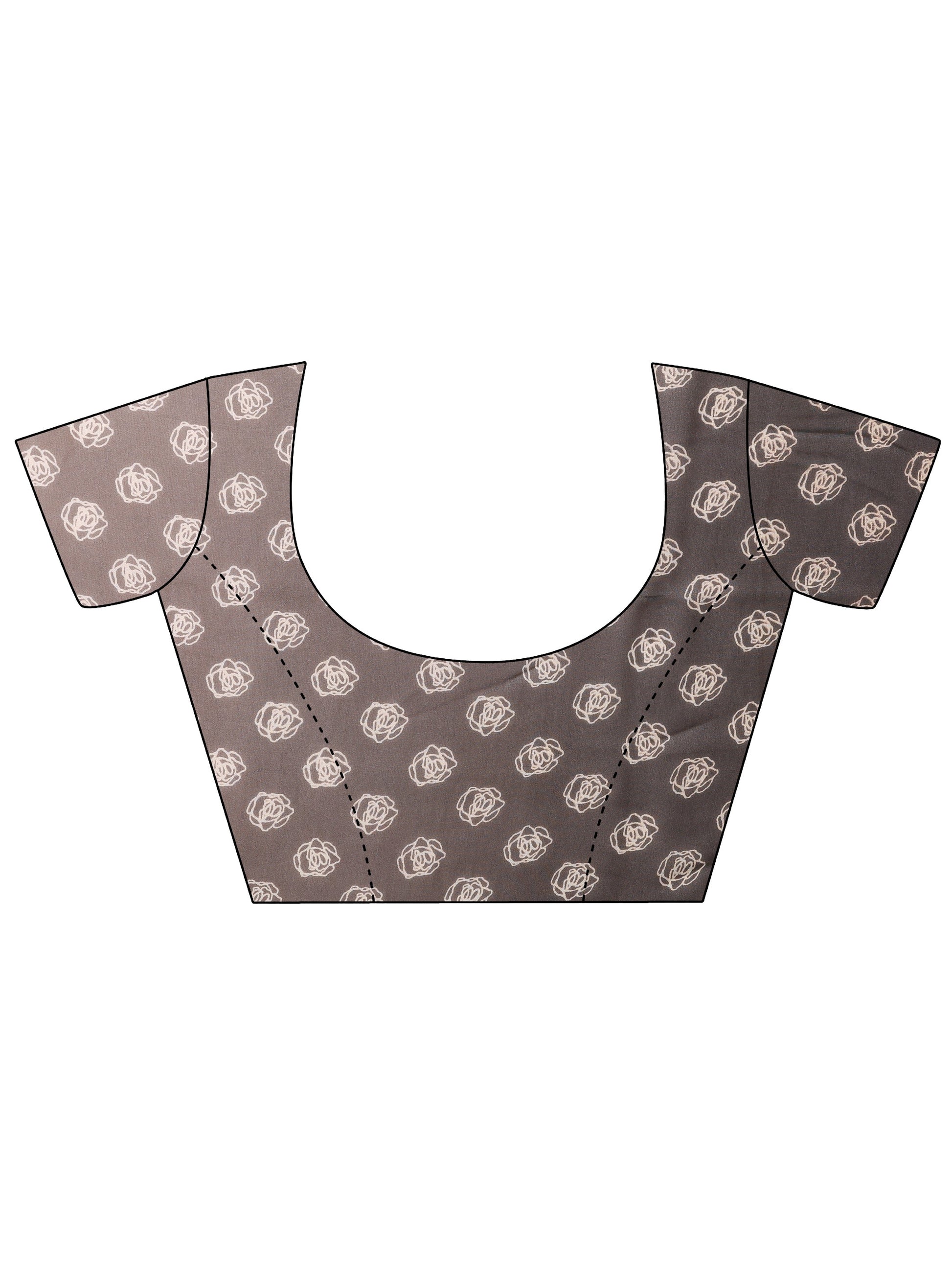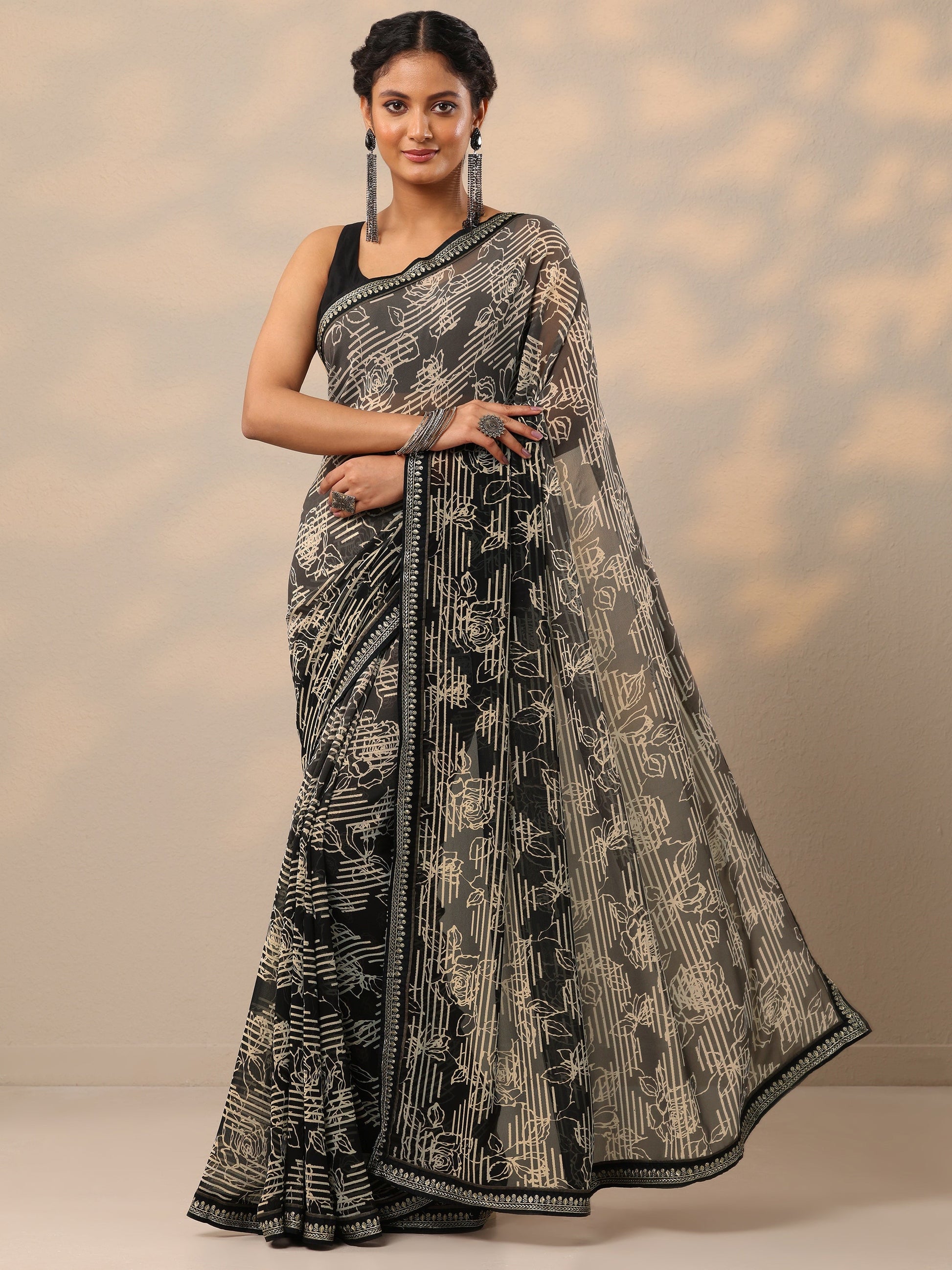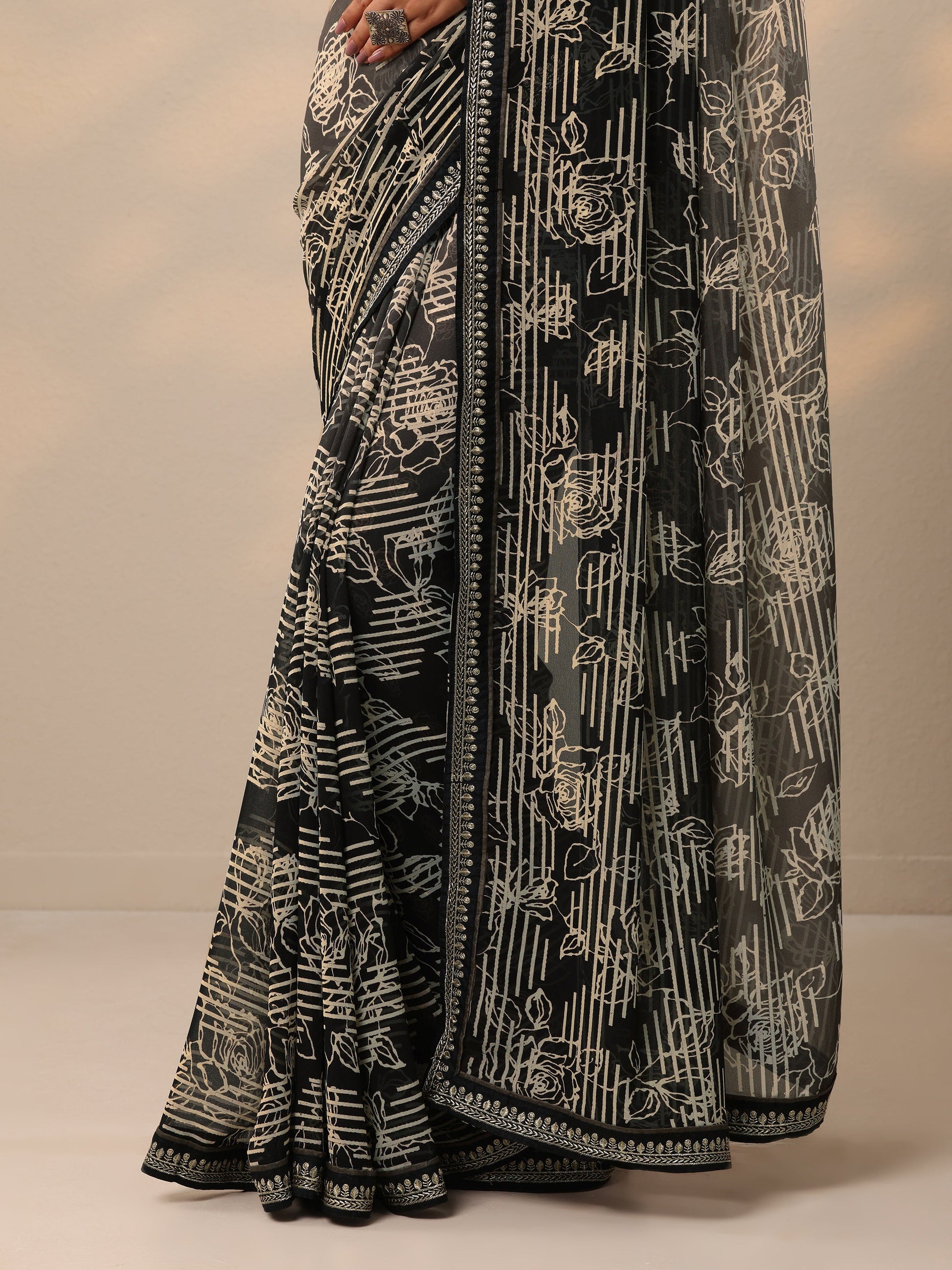 Black Printed Georgette Saree With Unstitched Blouse Piece