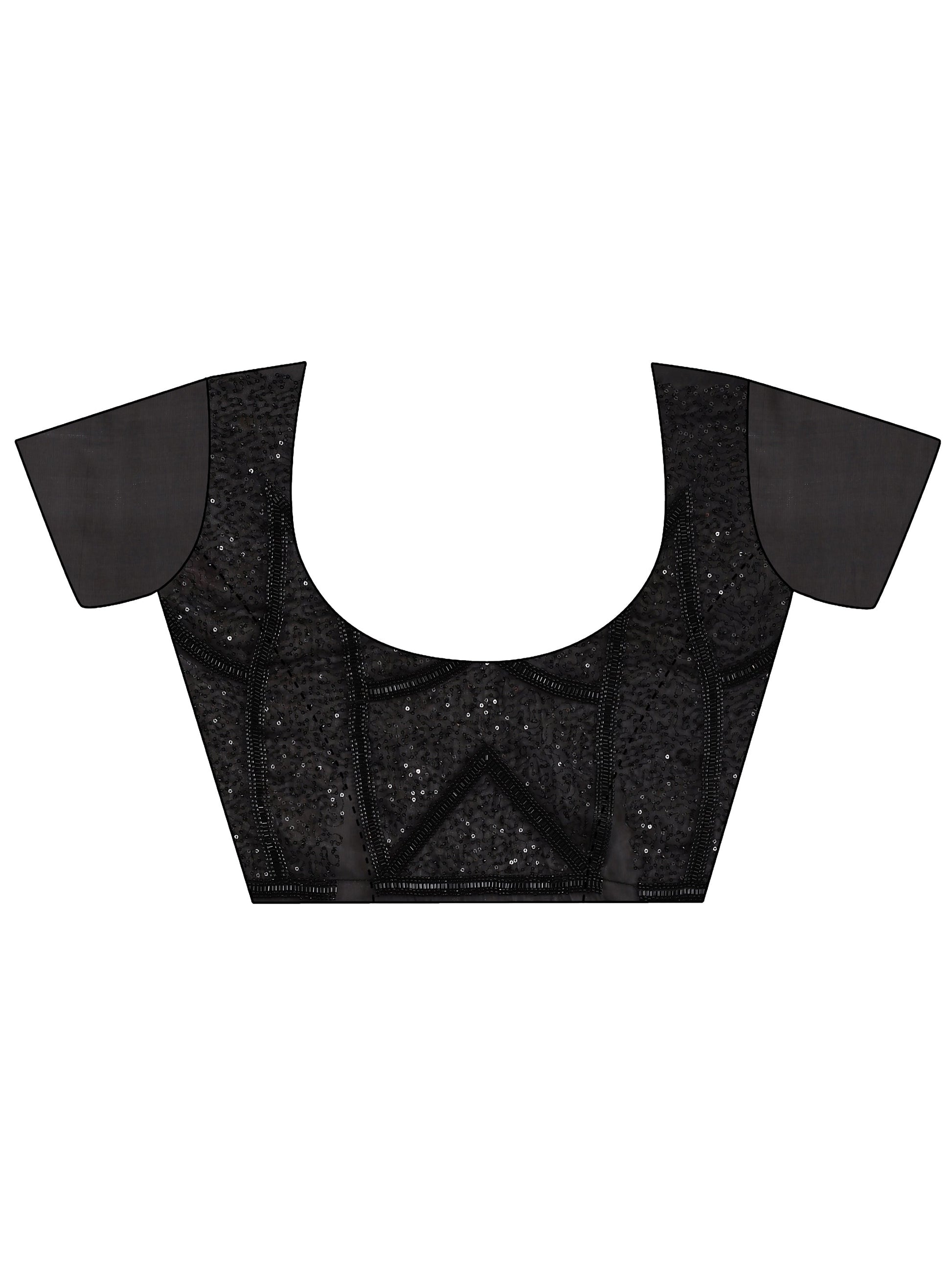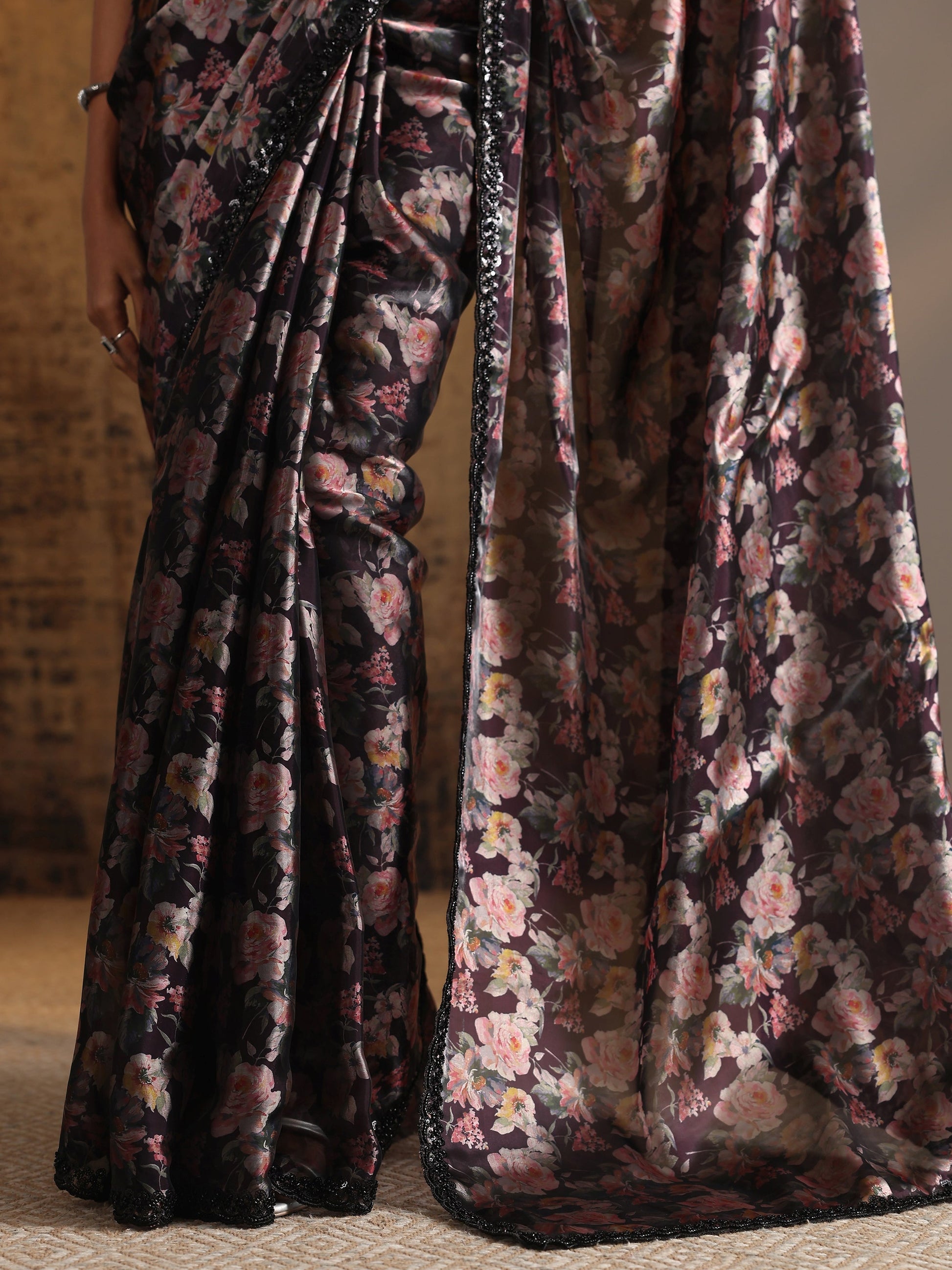 Black Printed Satin Saree With Unstitched Blouse Piece