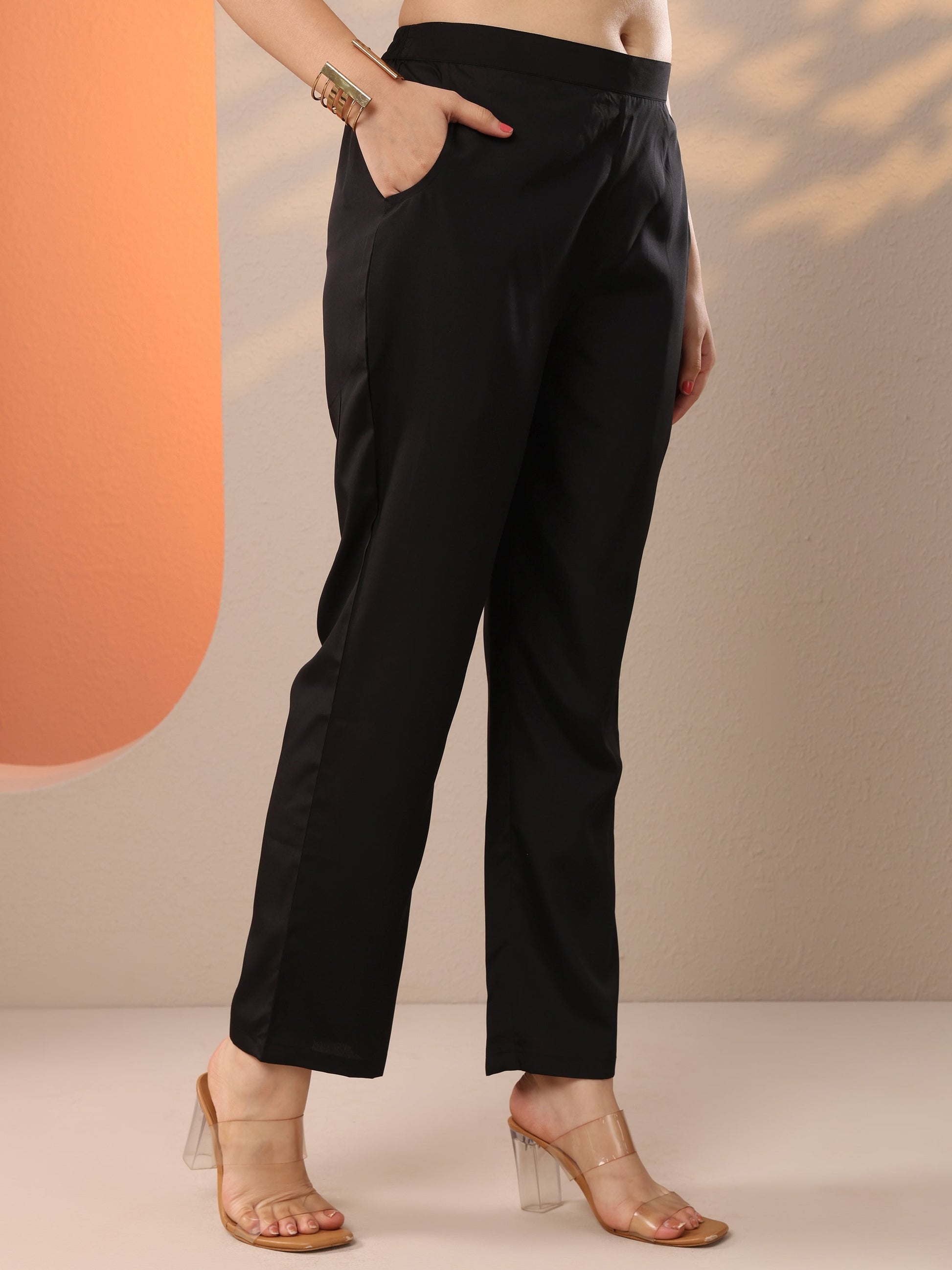 Our 3-piece Black Silk blend Anarkali Kurta Set features a Square Neckline, Regular Sleeves, and statement Yoke. Complemented with Straight Pants with a Partially Elasticated waistband and 2 pockets, and an Embroidered dupatta. Adorned with Ethnic Motif Printed, this style is perfect for Festive wear.