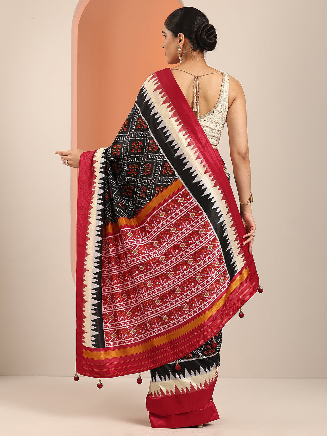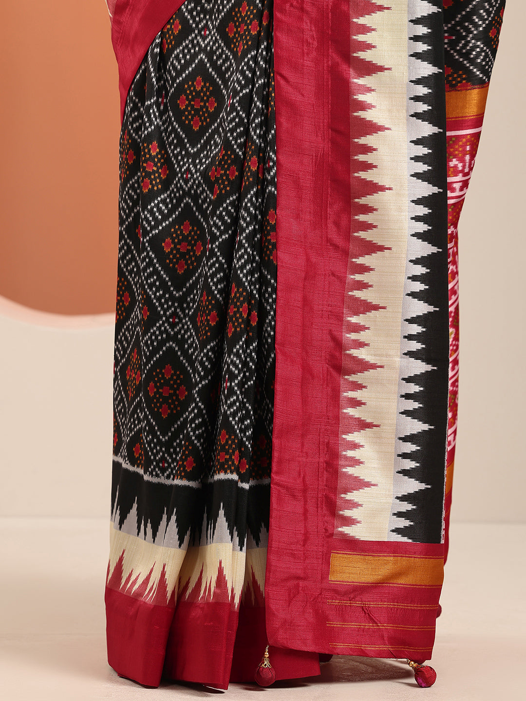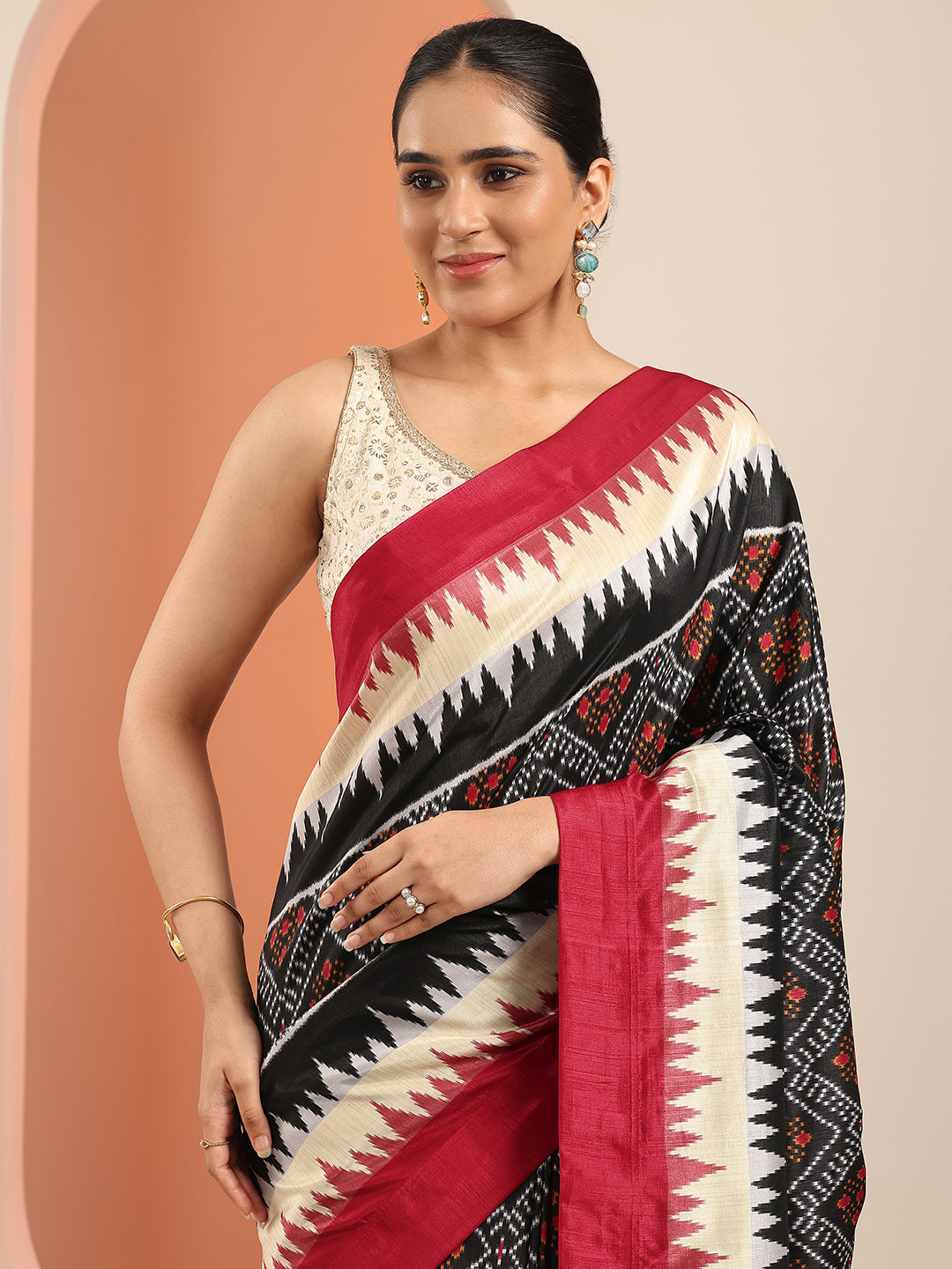 Black Printed Silk Blend Saree With Unstitched Blouse Piece