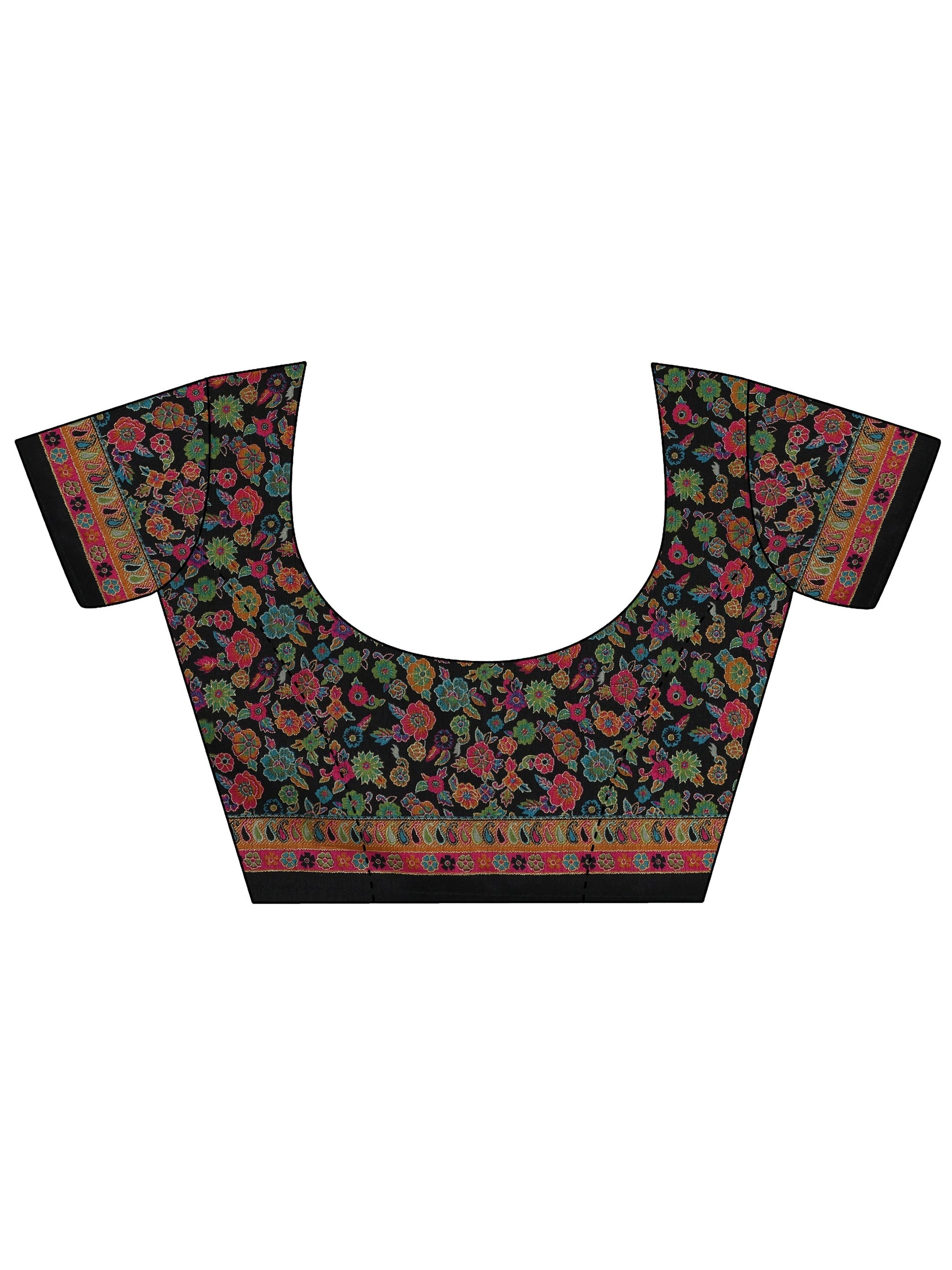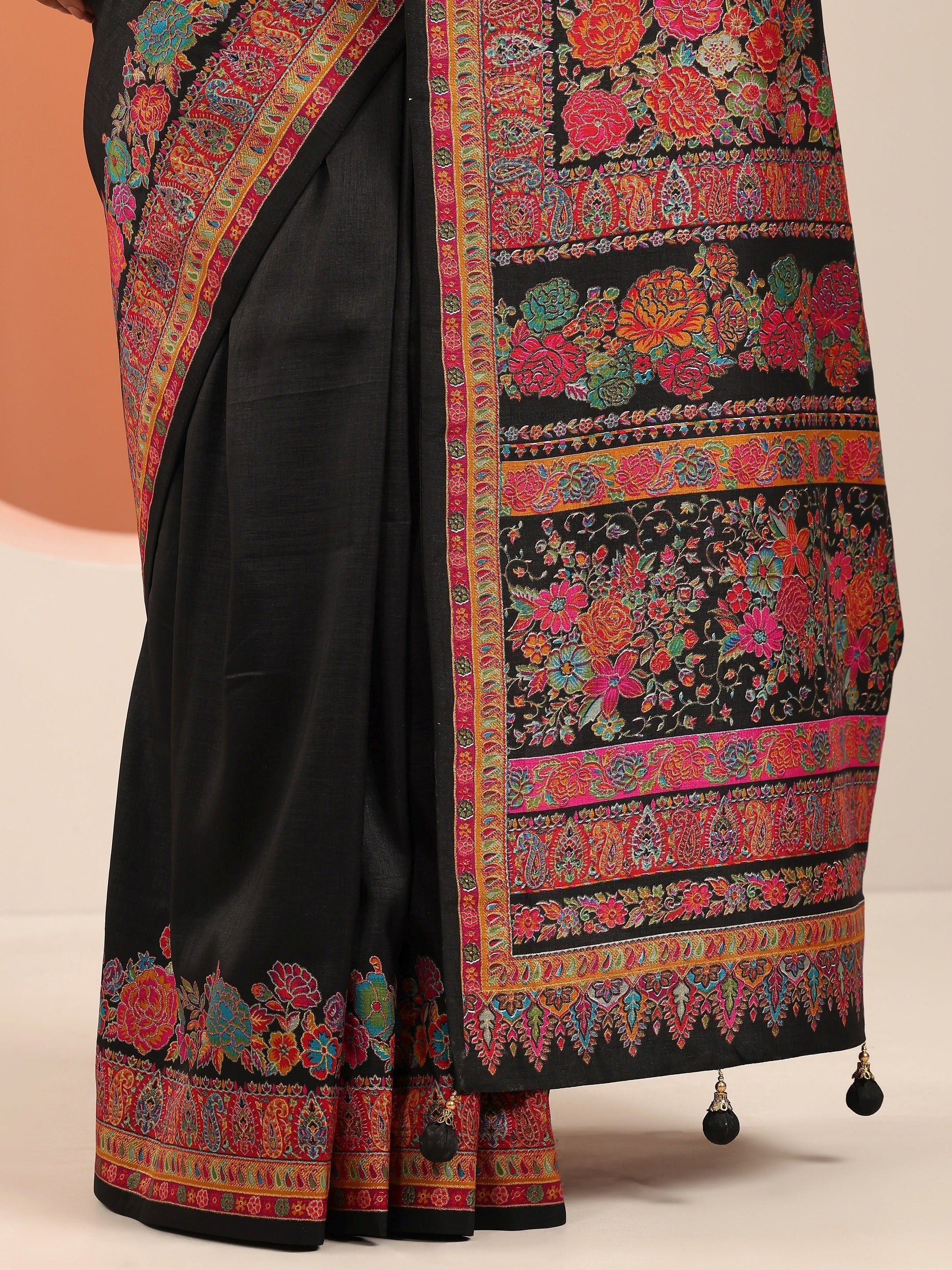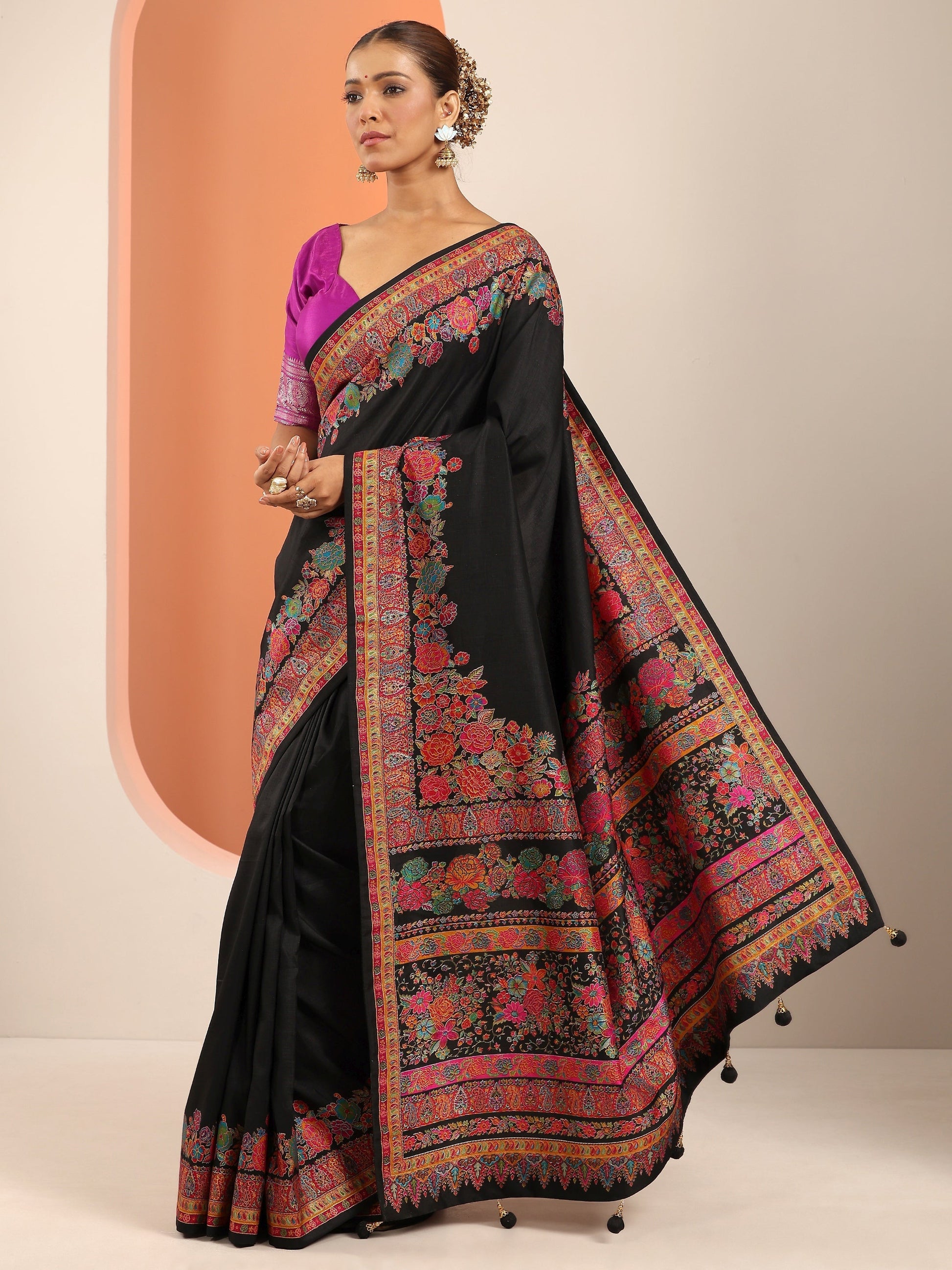Black Printed Silk Blend Saree With Unstitched Blouse Piece