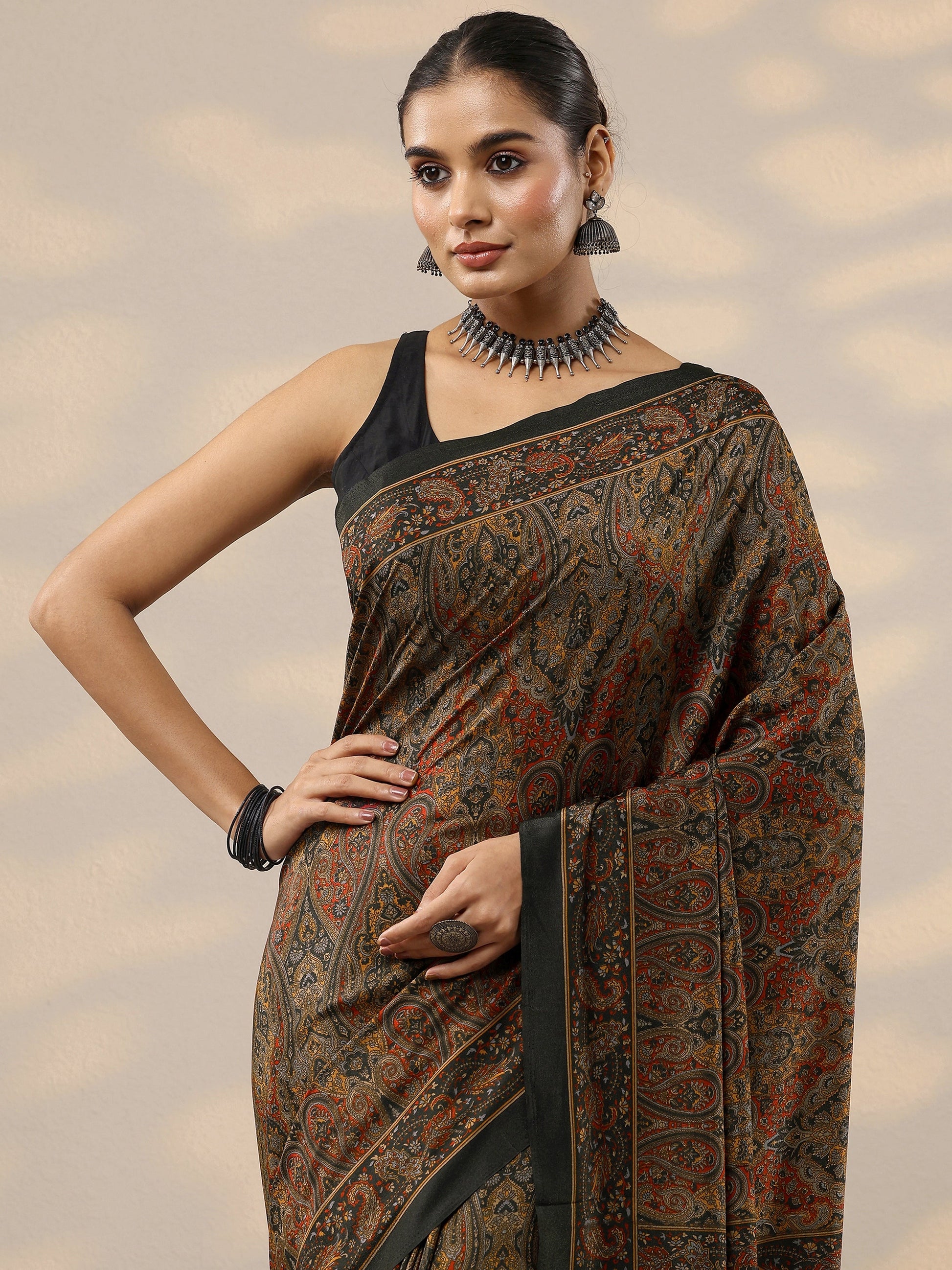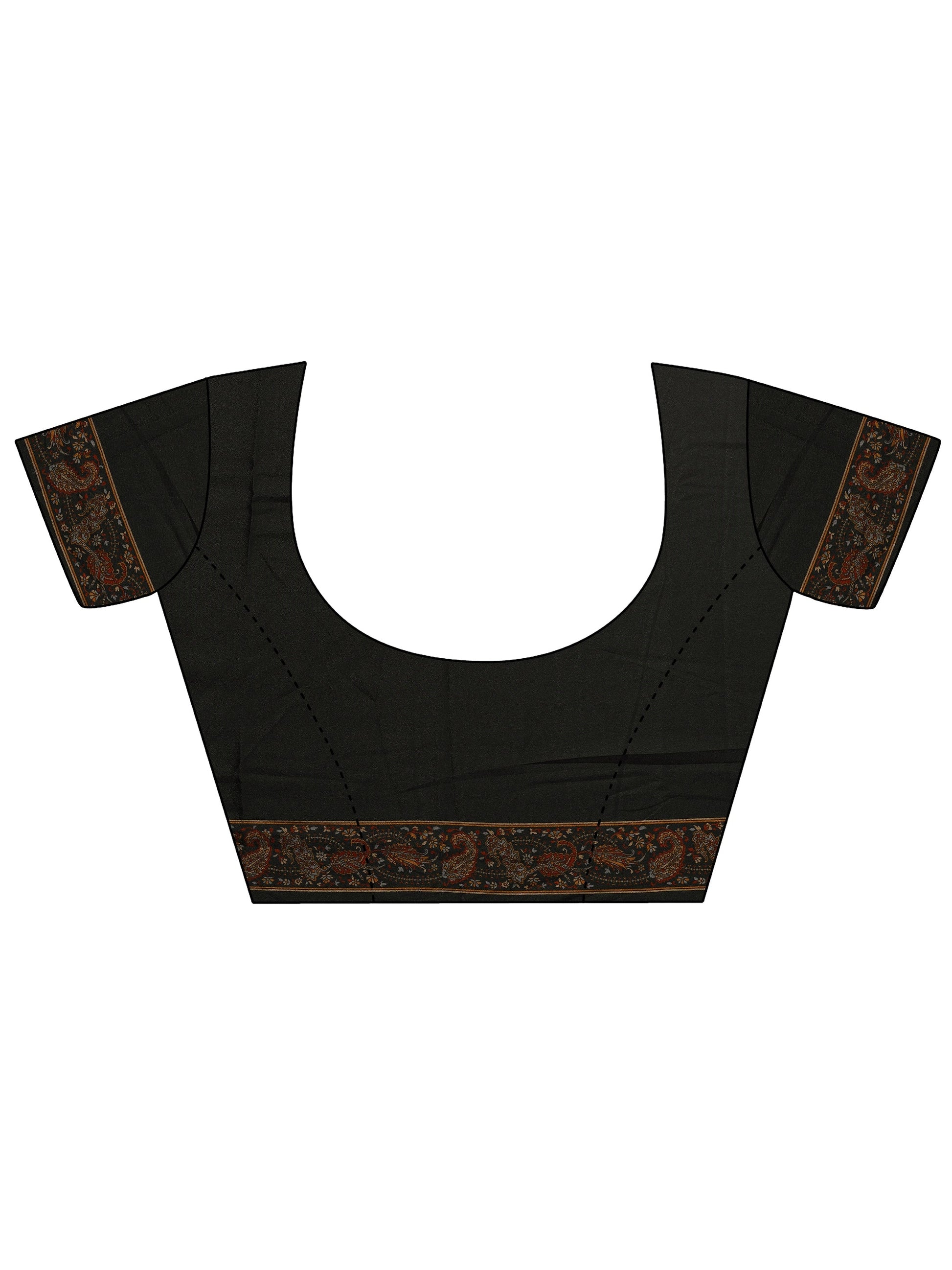 Black Printed Silk Blend Saree With Unstitched Blouse Piece