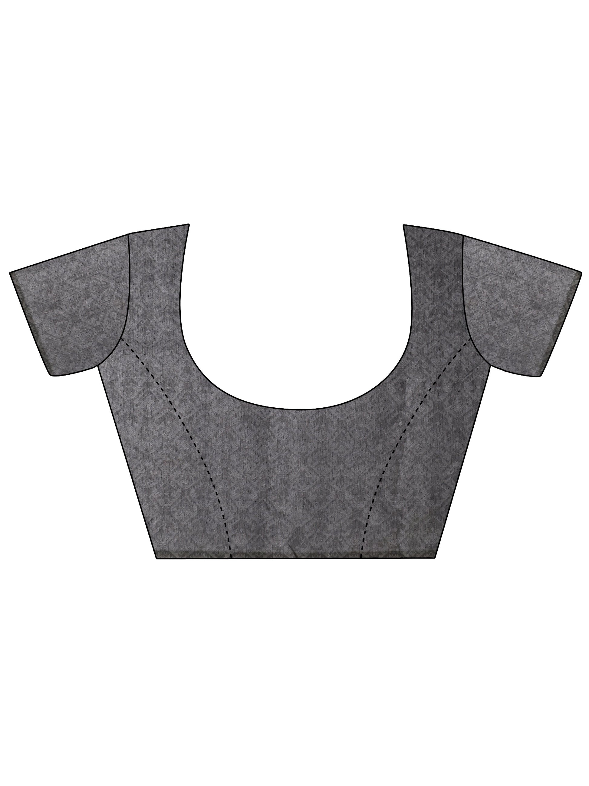 Black Printed Silk Blend Saree With Unstitched Blouse Piece