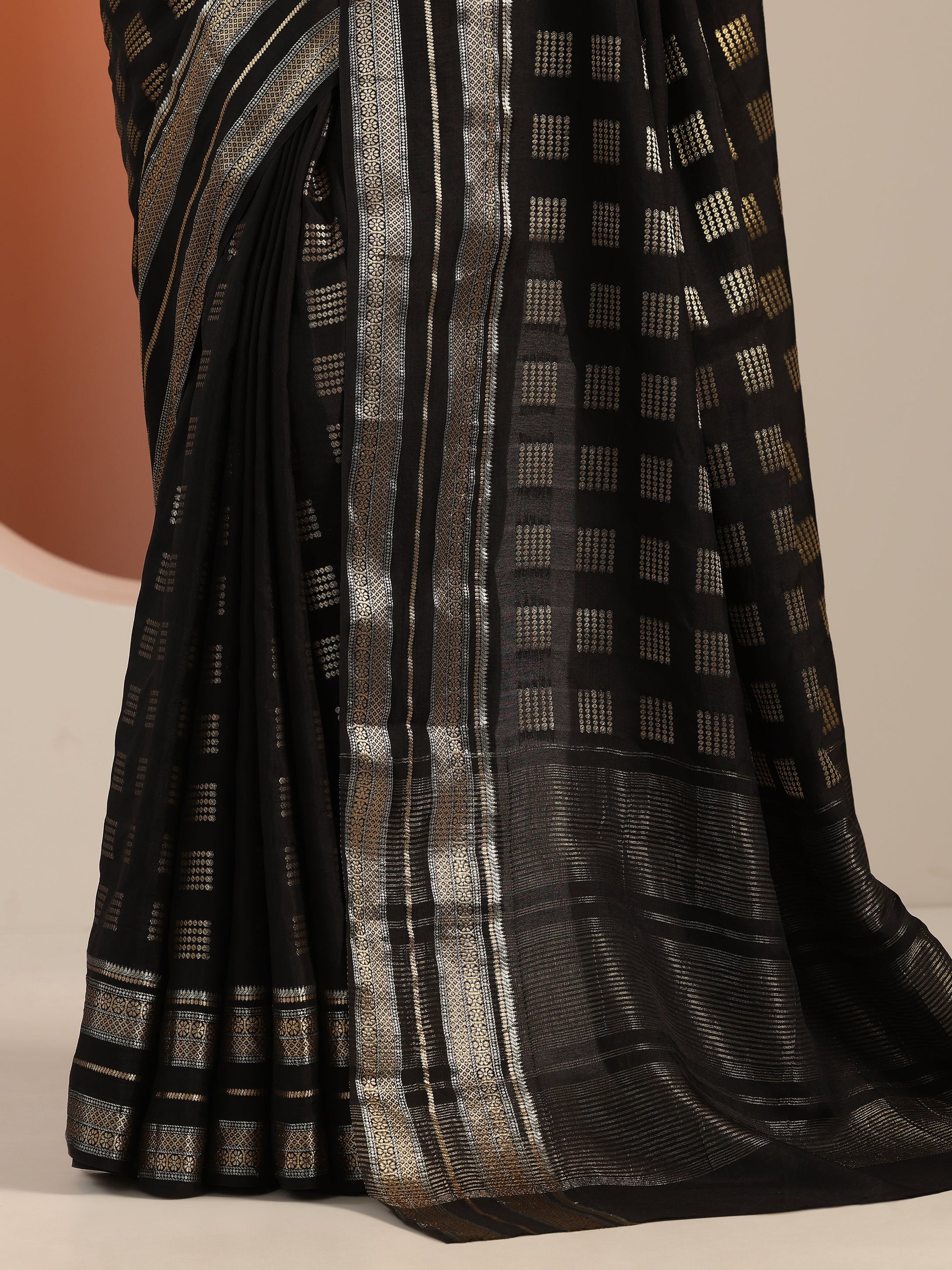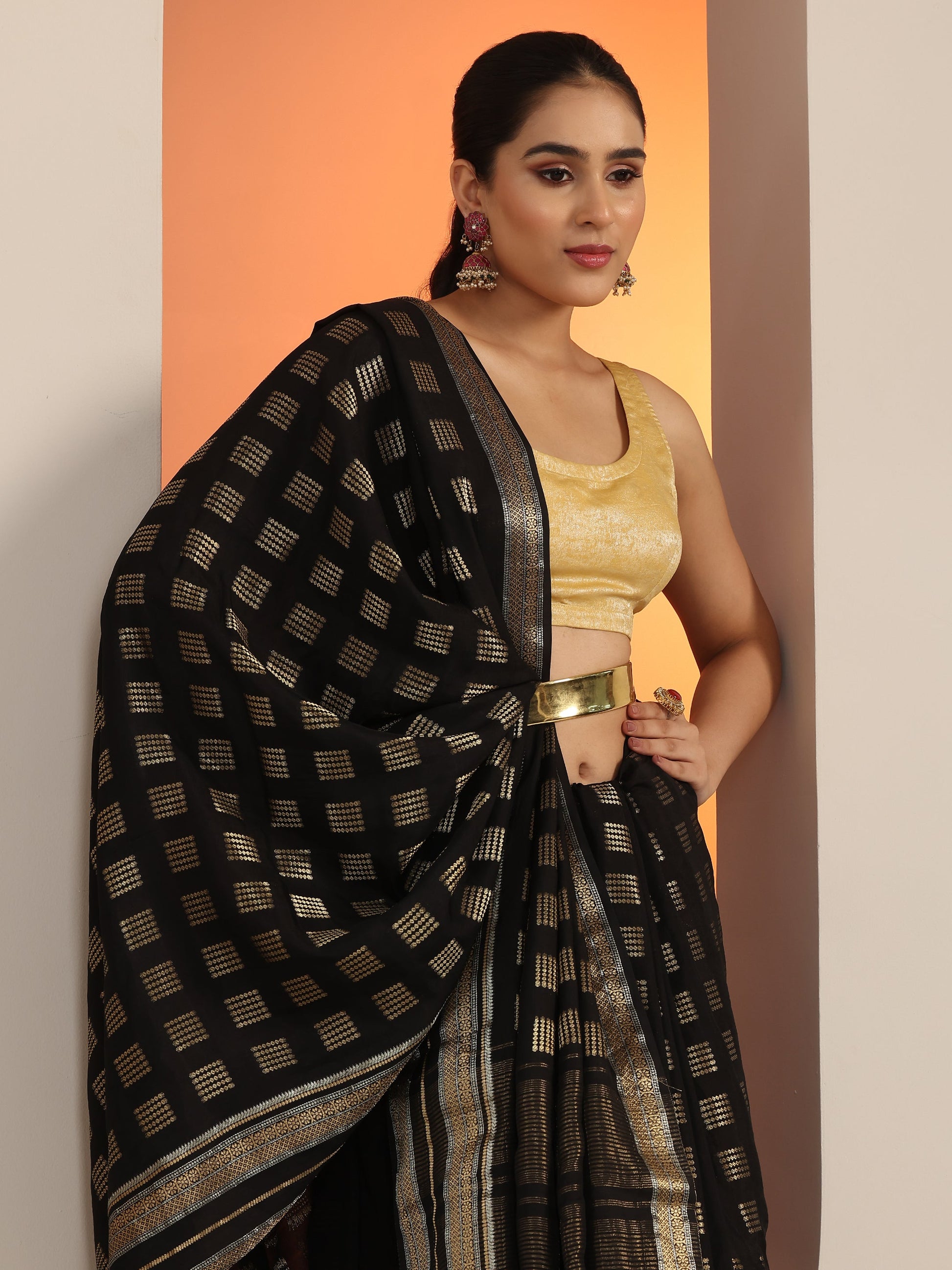 Black Woven Design Silk Blend Saree With Unstitched Blouse Piece
