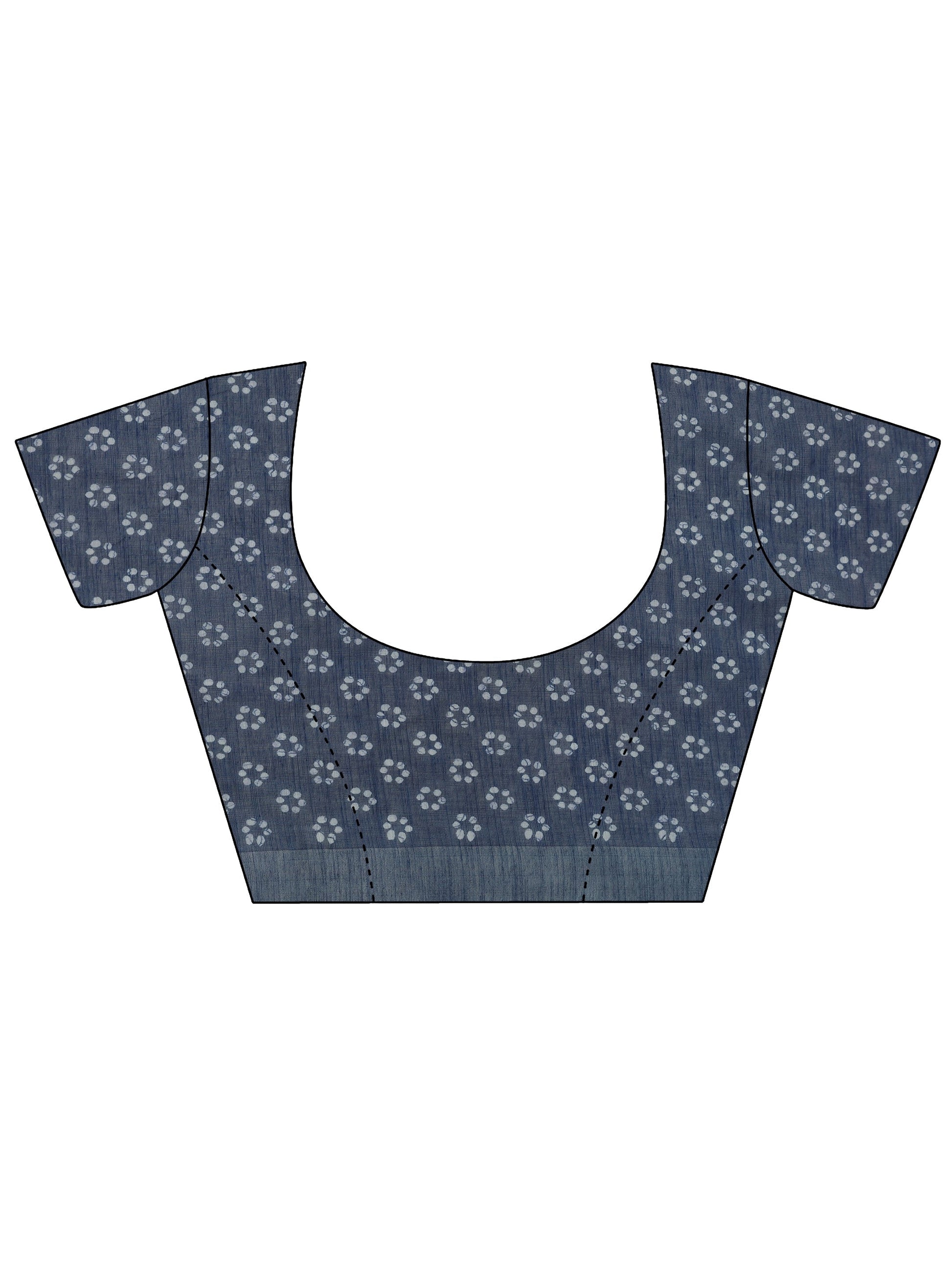Our Navy Blue Printed Cotton Blend Saree Features Captivating Top Print. Complemented With An Unstitched Blouse Piece. This Charming Saree Is Perfect For Festive Wear.