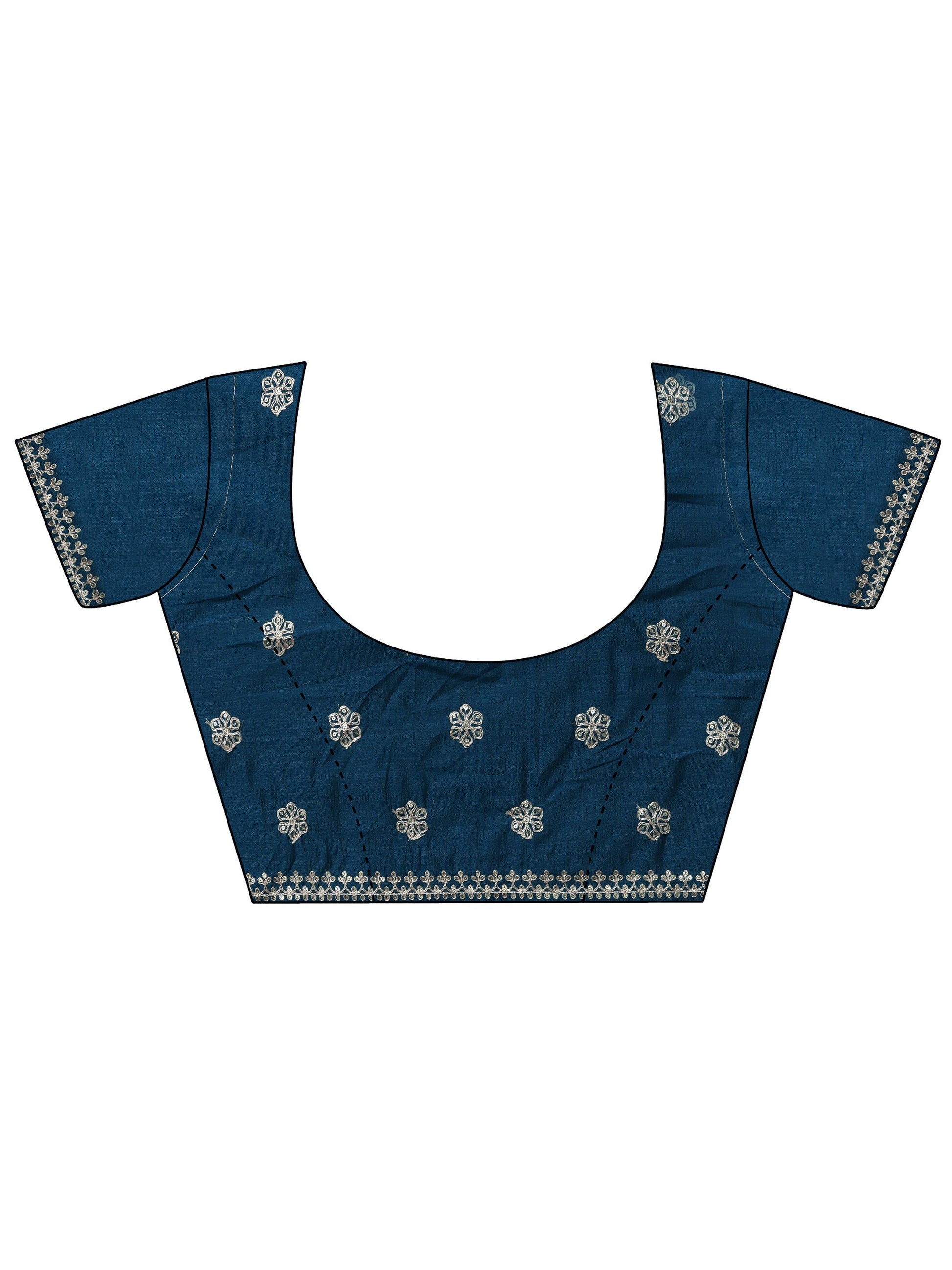 Our Navy Blue Printed Silk Blend Saree. Complemented With An Unstitched Blouse Piece. This Charming Saree Is Perfect For Festive Occasions