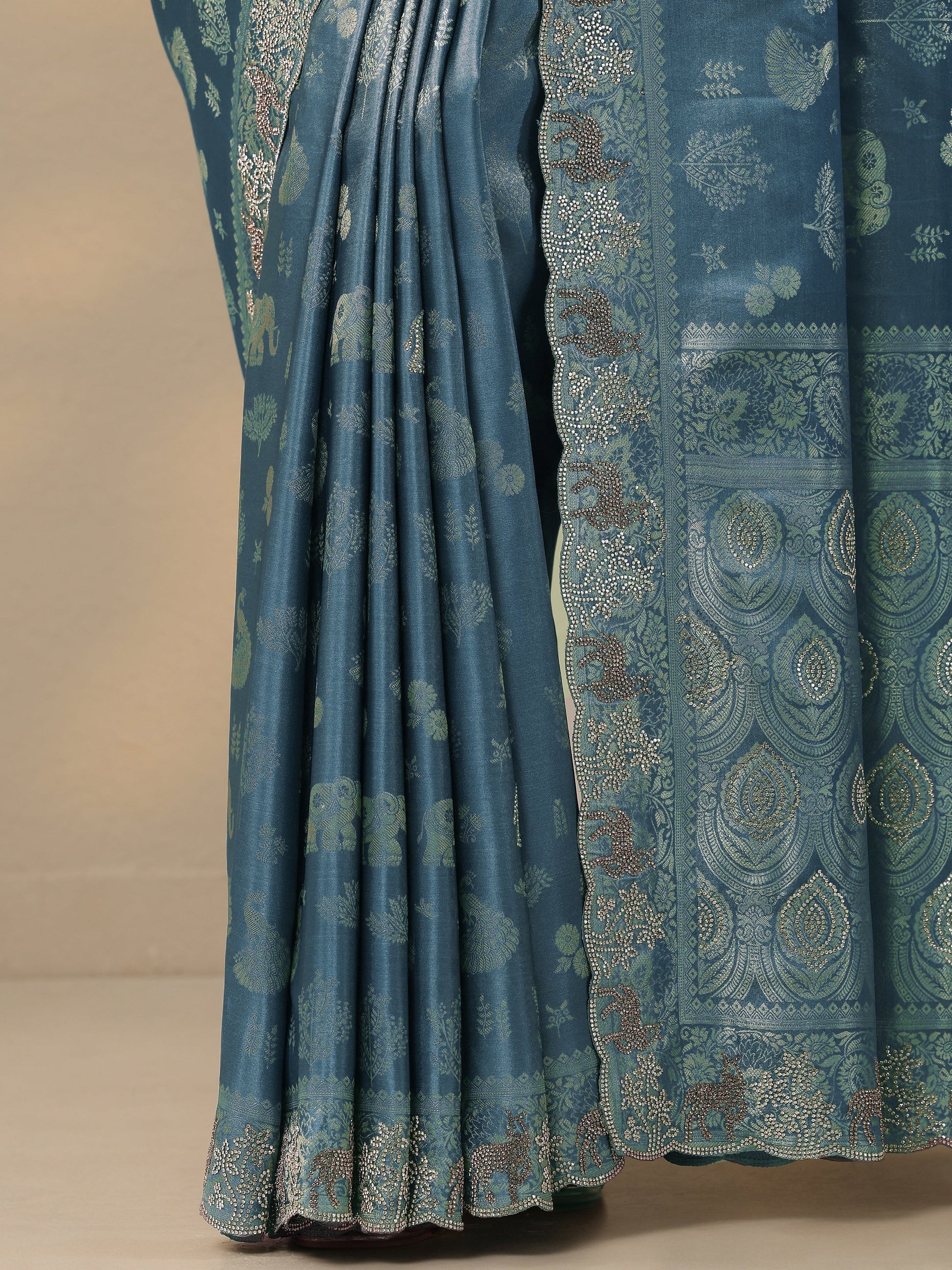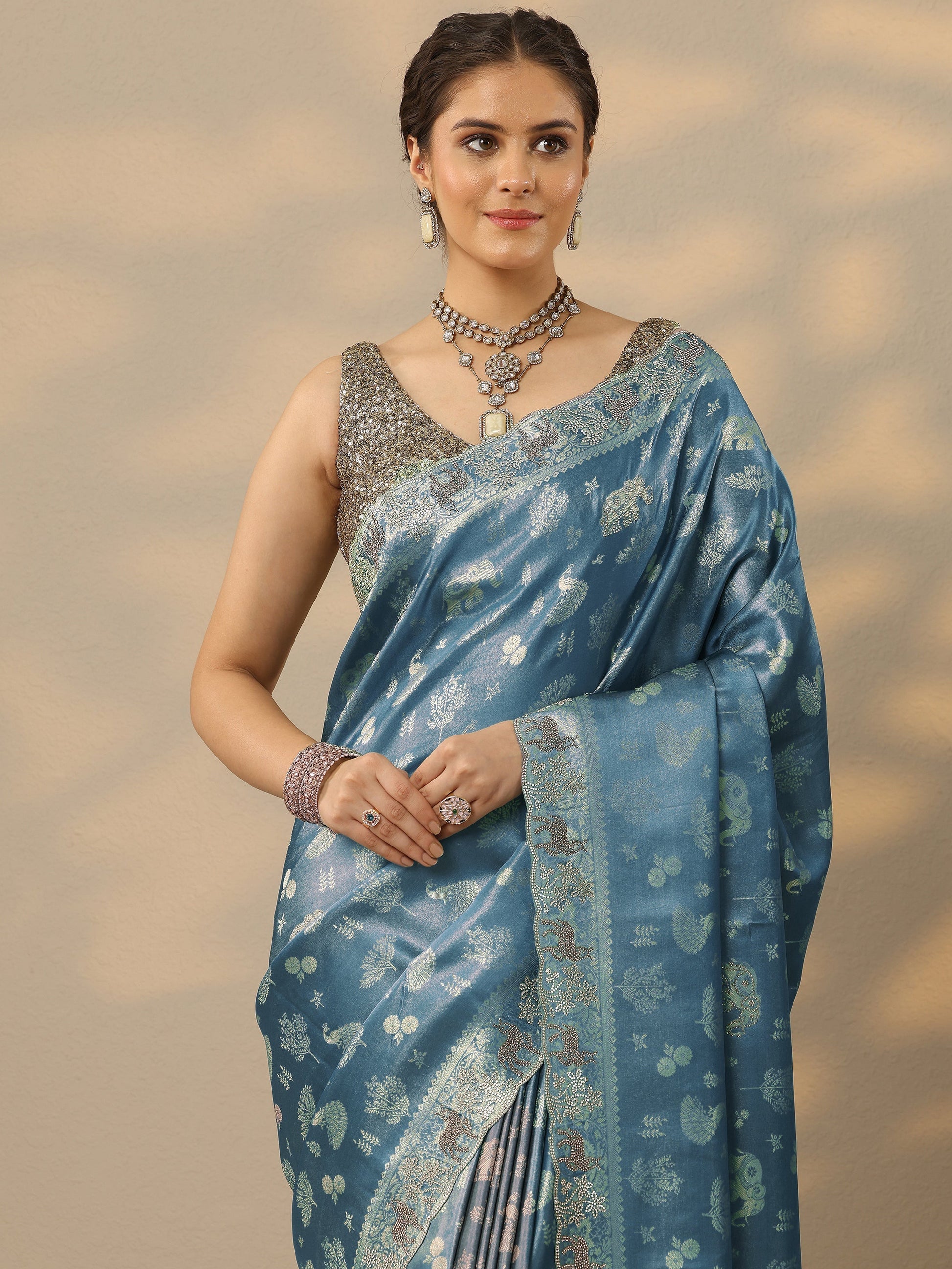 Blue Embellished Banarasi Silk Blend Saree With Unstitched Blouse Piece