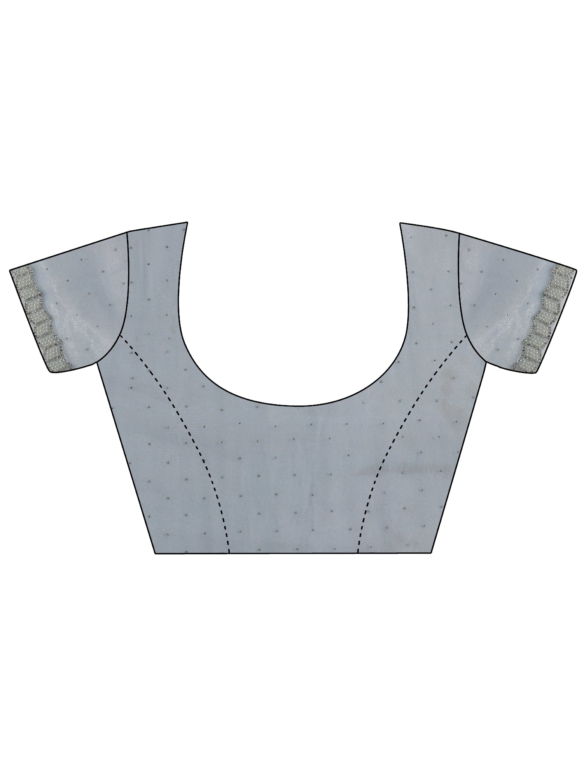 Blue Embellished Organza Saree With Unstitched Blouse Piece