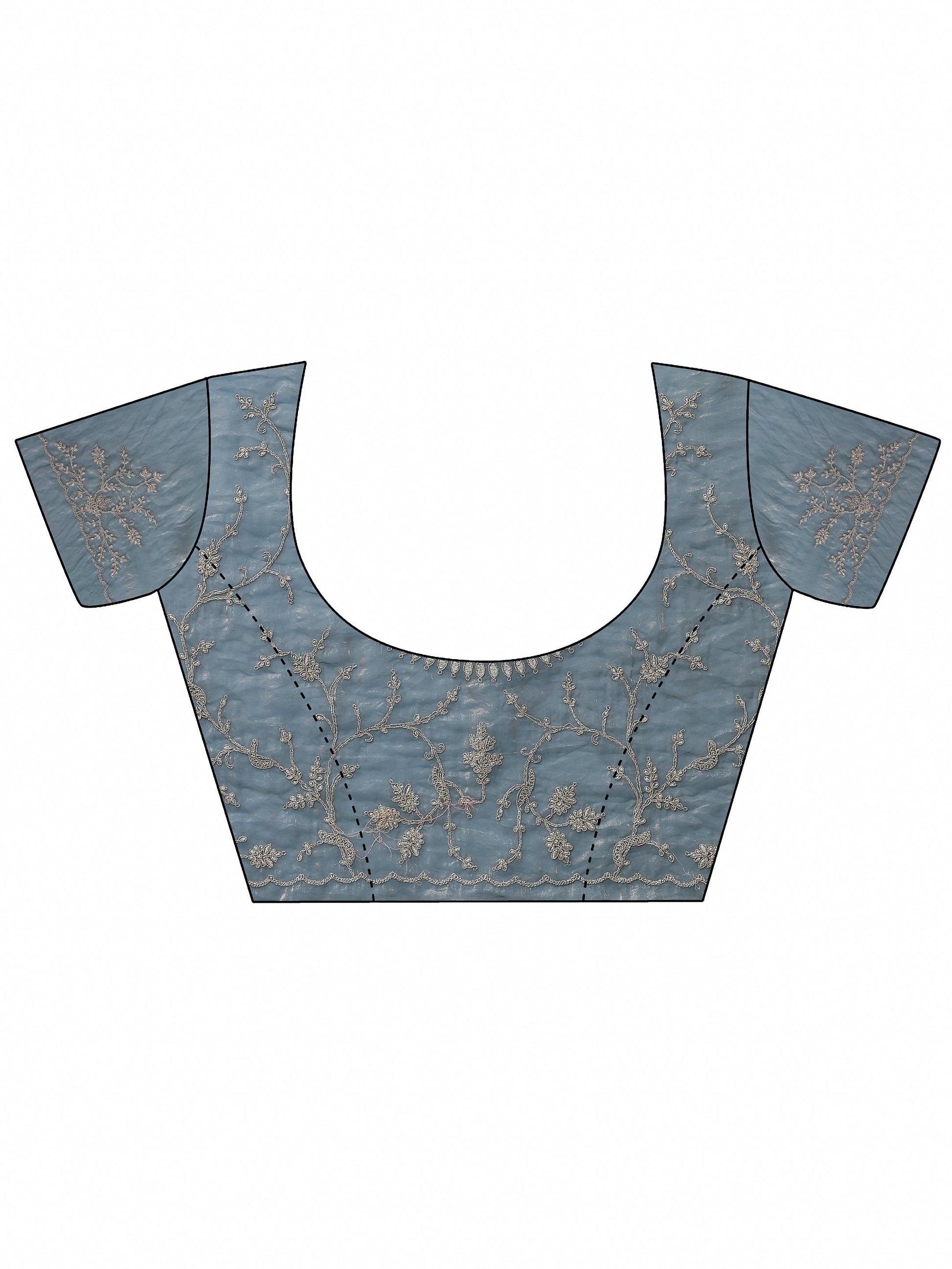 Blue Embellished Organza Saree With Unstitched Blouse Piece