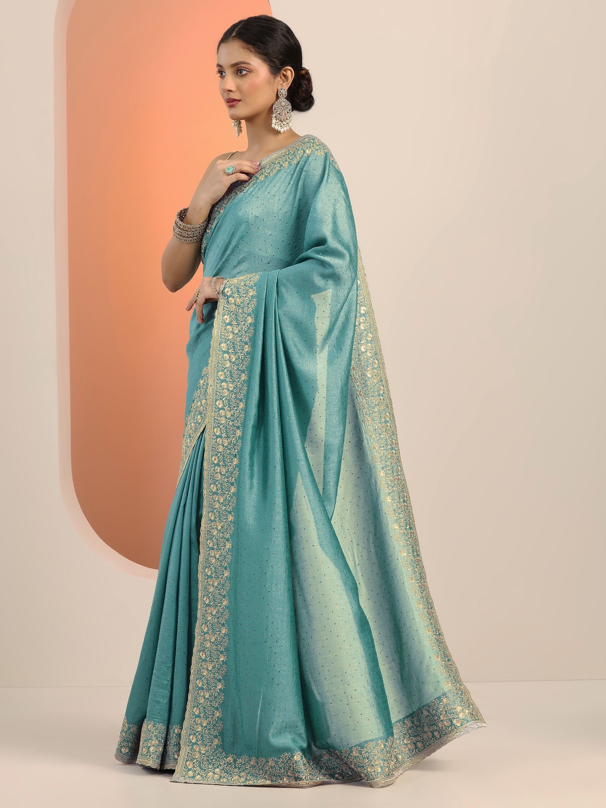 Blue Embellished Silk blend Saree With Unstitched Blouse Piece