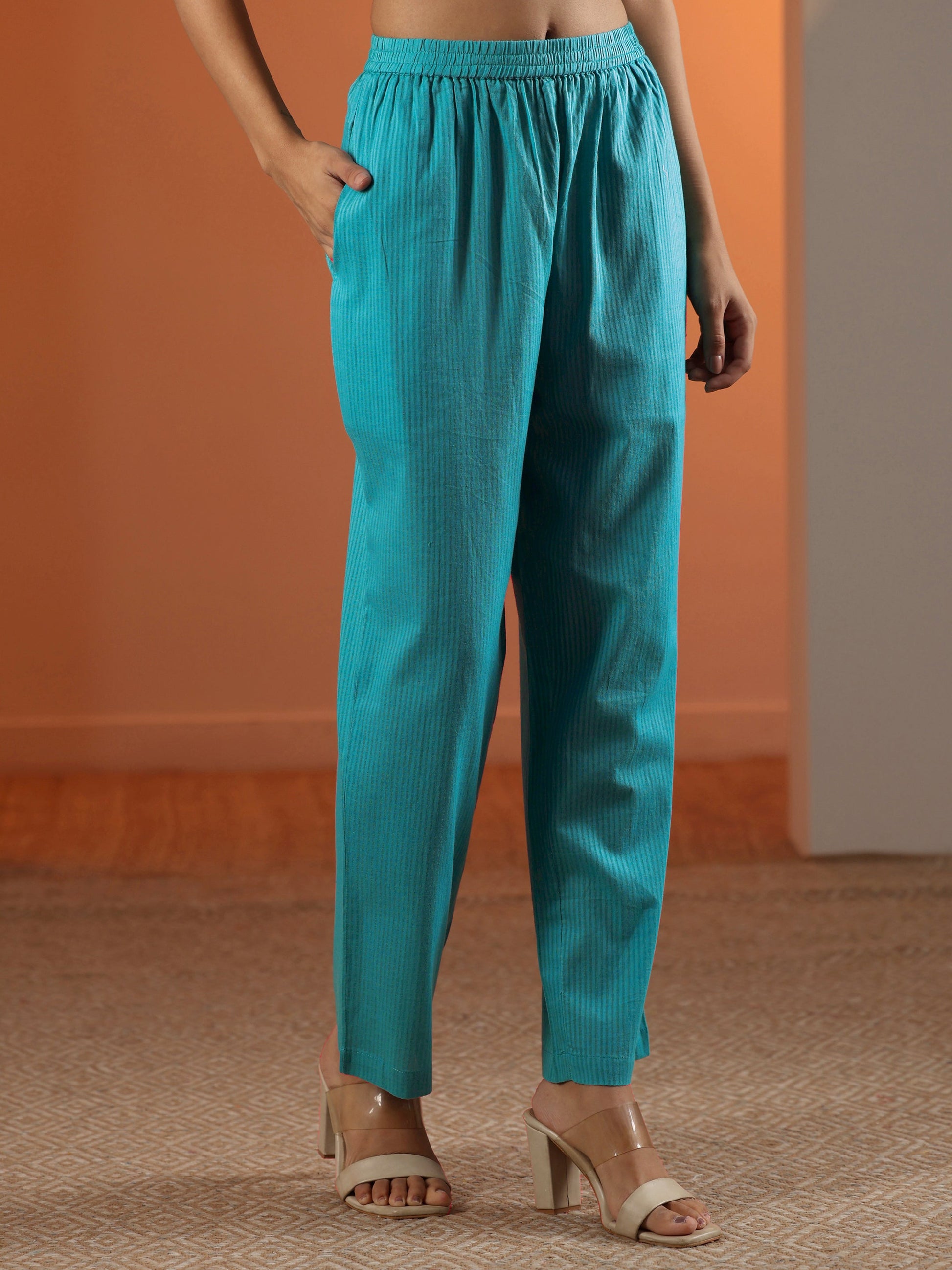Our 3-piece teal cotton kurta set features a straight-fit silhouette with a V-neckline, regular sleeves, and statement yoke. Complemented with COTTON lining and straight pants with a partially elasticated waistband and 2 pockets, and an embroidered dupatta. Adorned with floral embroidered accents, this style is perfect for festive occasions.