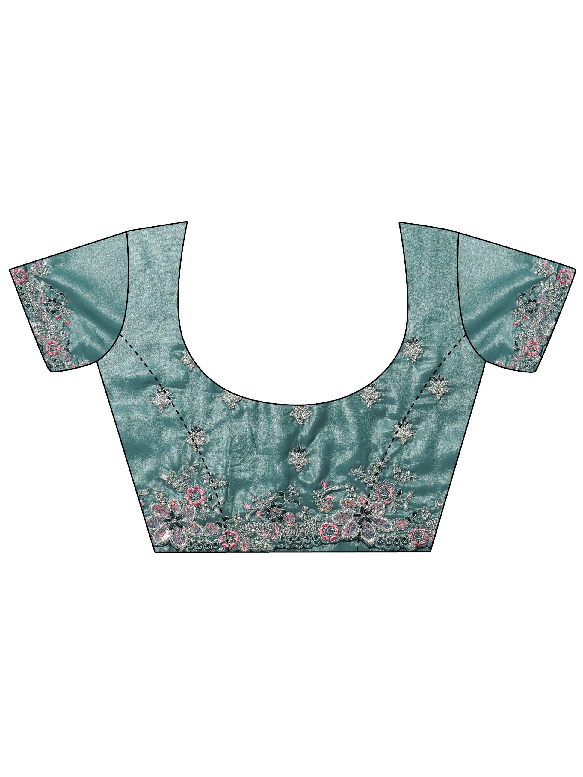 Our Teal printed Crepe saree features captivating floral embellishments. Complemented with a unstitched blouse Piece. This charming saree is perfect for festive occasions