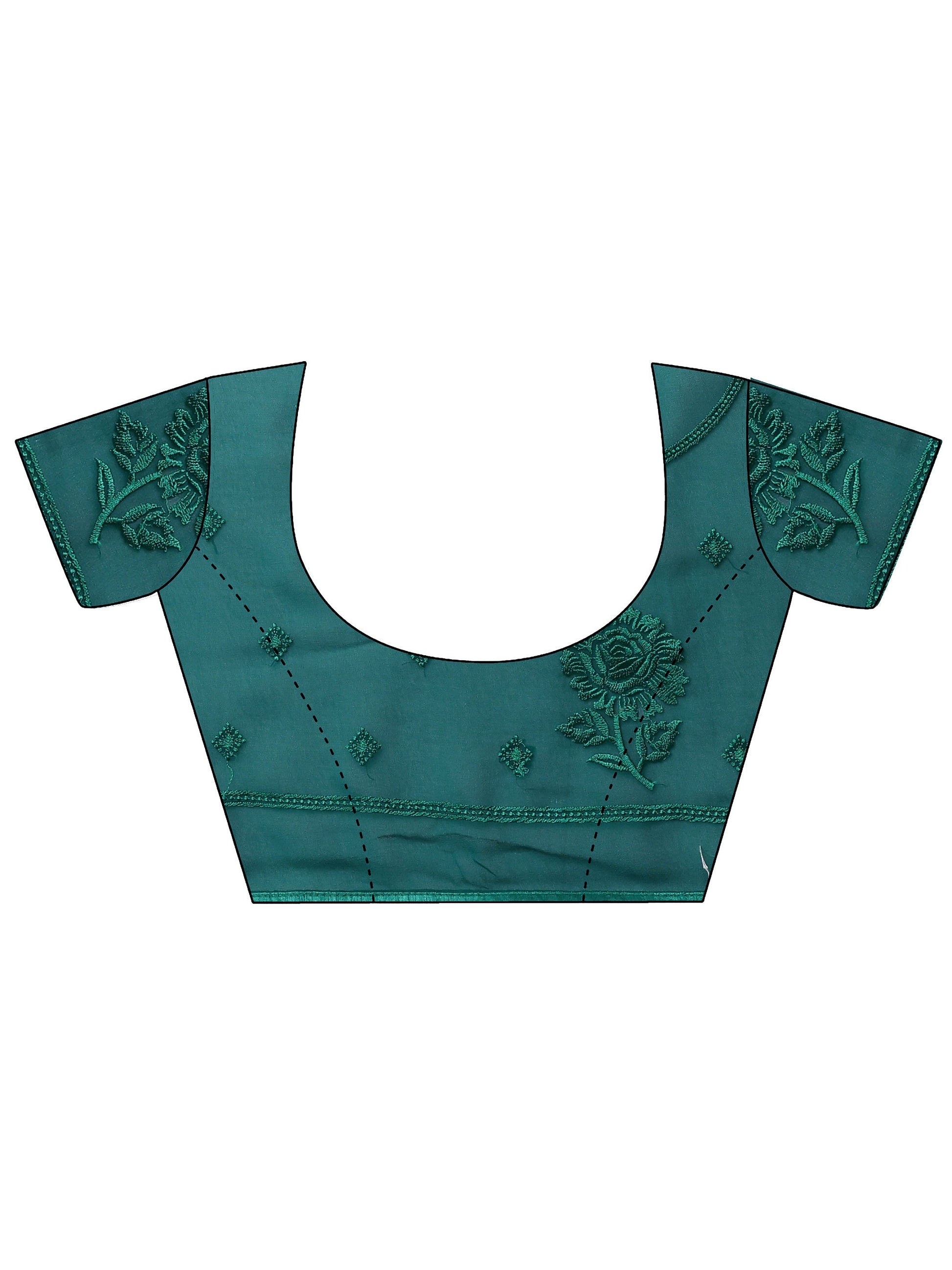 Our Teal printed Georgette saree features captivating floral print. Complemented with a Stitched Blouse. This charming saree is perfect for festive occasions.