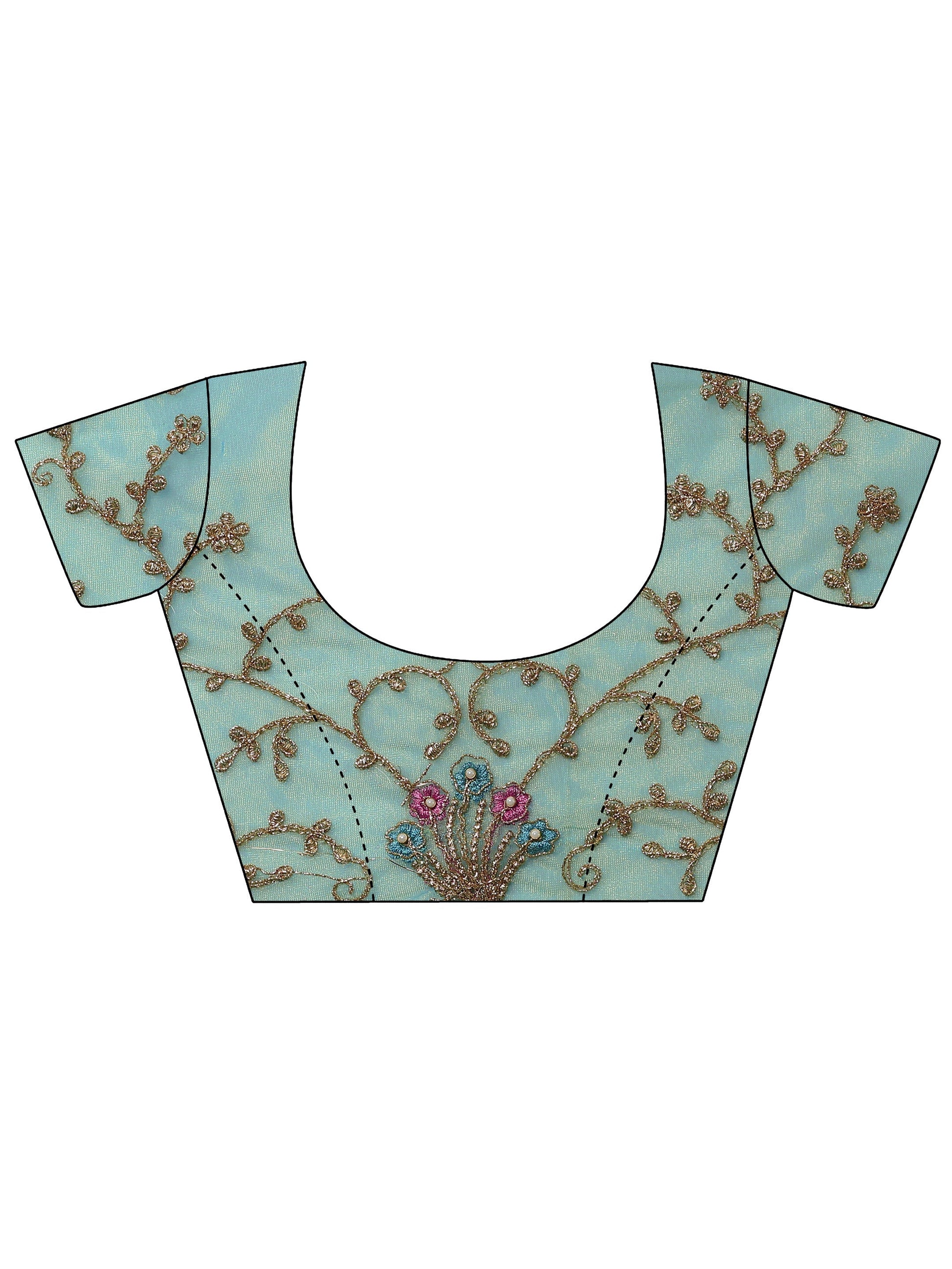 Blue Embroidered Nylon Saree With Unstitched Blouse Piece