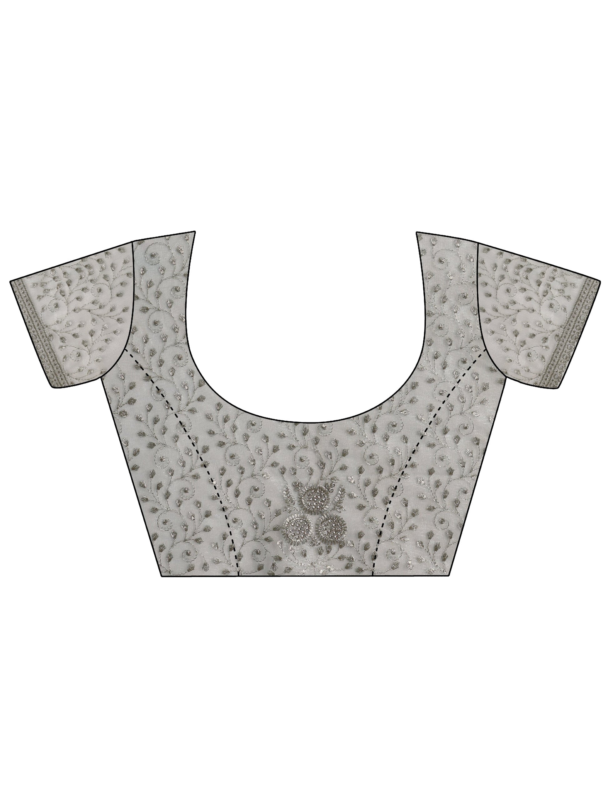 Blue Embroidered Organza Saree With Unstitched Blouse Piece
