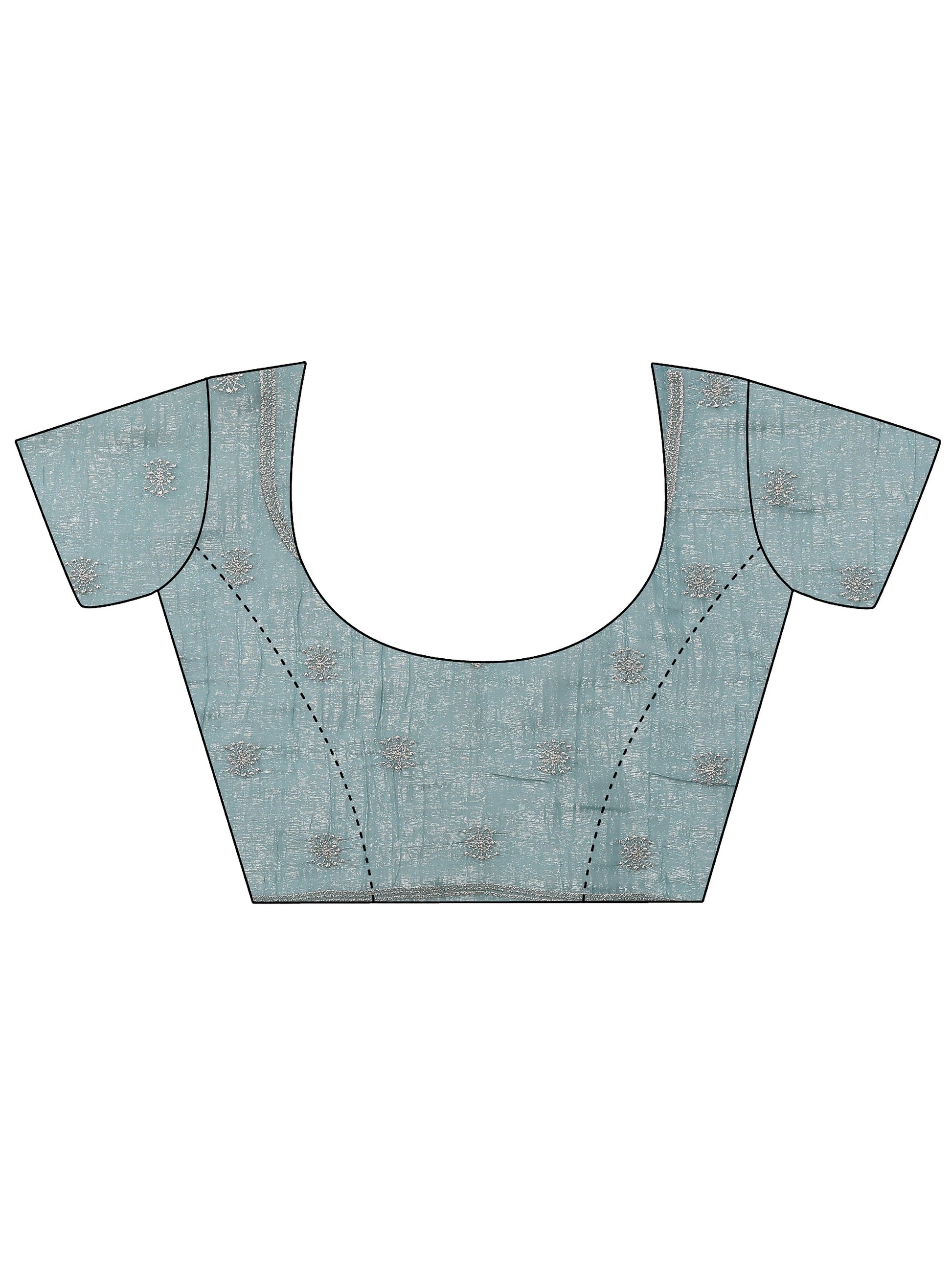 Our Blue Embroidered Organza saree features captivating ethnic motif. Complemented with a unblouse Piece. This charming saree is perfect for festive occasions.