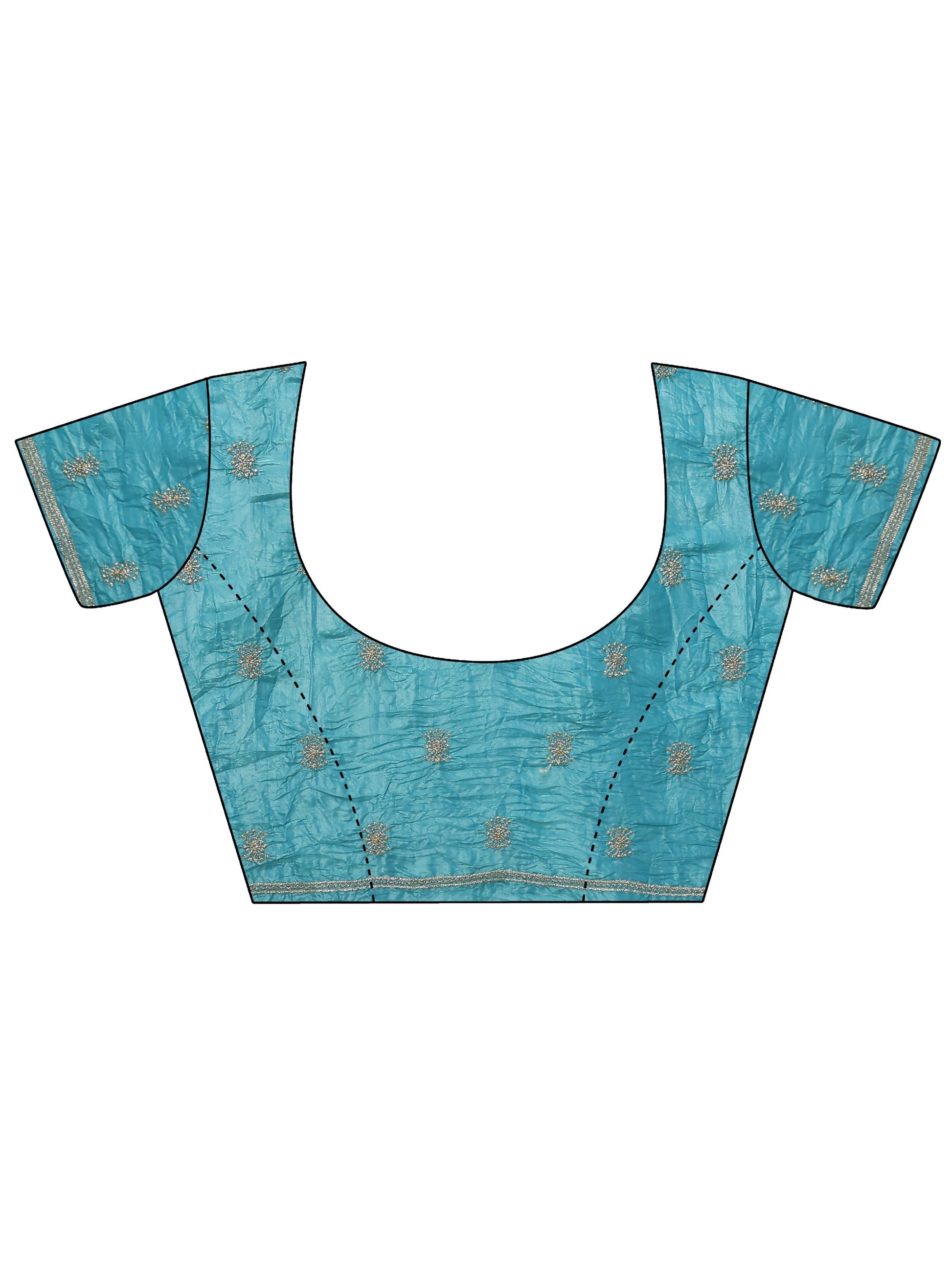 Blue Embroidered Organza Saree With Unstitched Blouse Piece