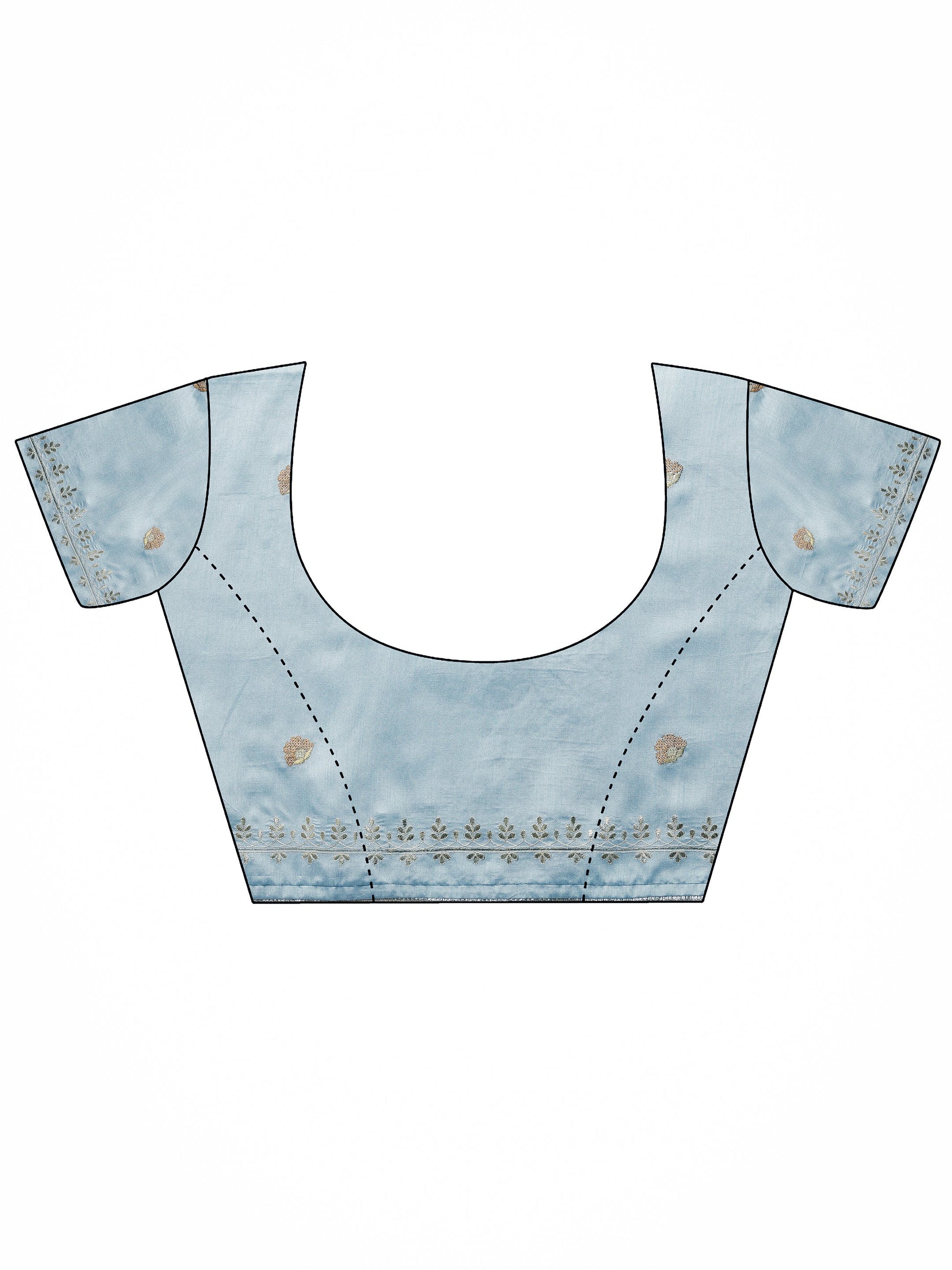 Our Teal printed Organza saree features captivating floral embroidery. Complemented with a Blouse Piece. This charming saree is perfect for festive occasions.
