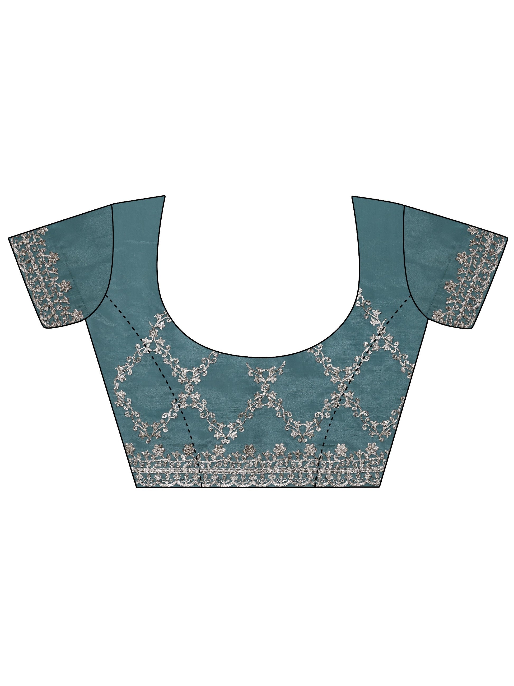 Blue Embroidered Silk Blend Saree With Unstitched Blouse Piece