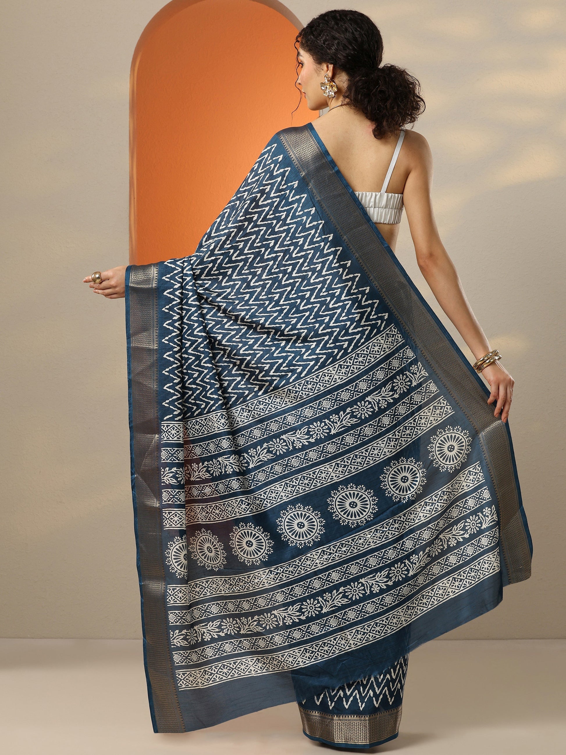 Blue Leheriya Printed Silk Blend Saree With Unstitched Blouse Piece