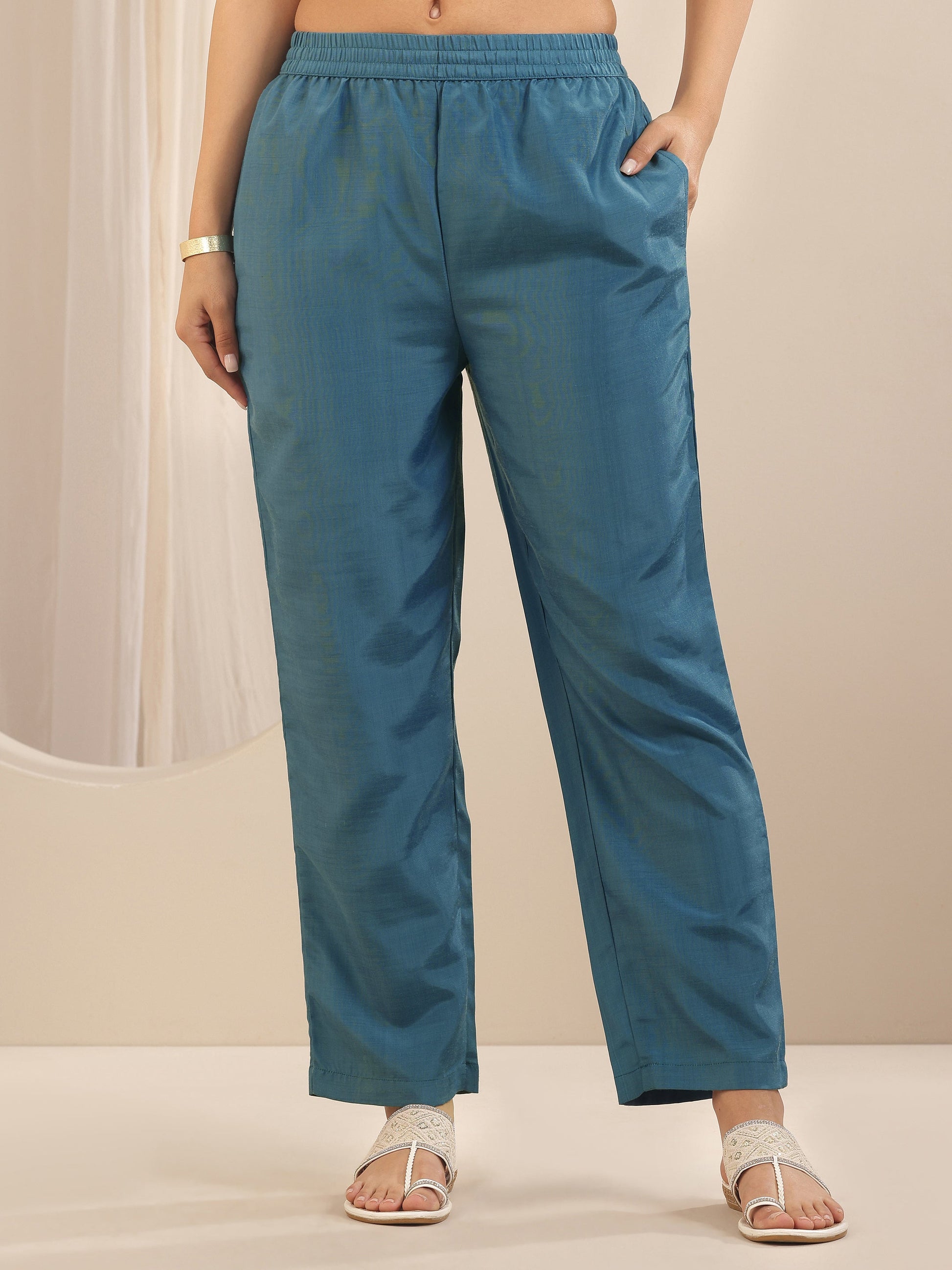 Our 3-piece Blue Chinon suit set features a Straight-fit Kurta Set with a Round Neckline, Regular Sleeves, and statement yoke. Complemented with Straight Pants with an Elasticated waistband, and a dupatta. Adorned with Embroidered, Printed accents, this style is perfect for Festive occasions.