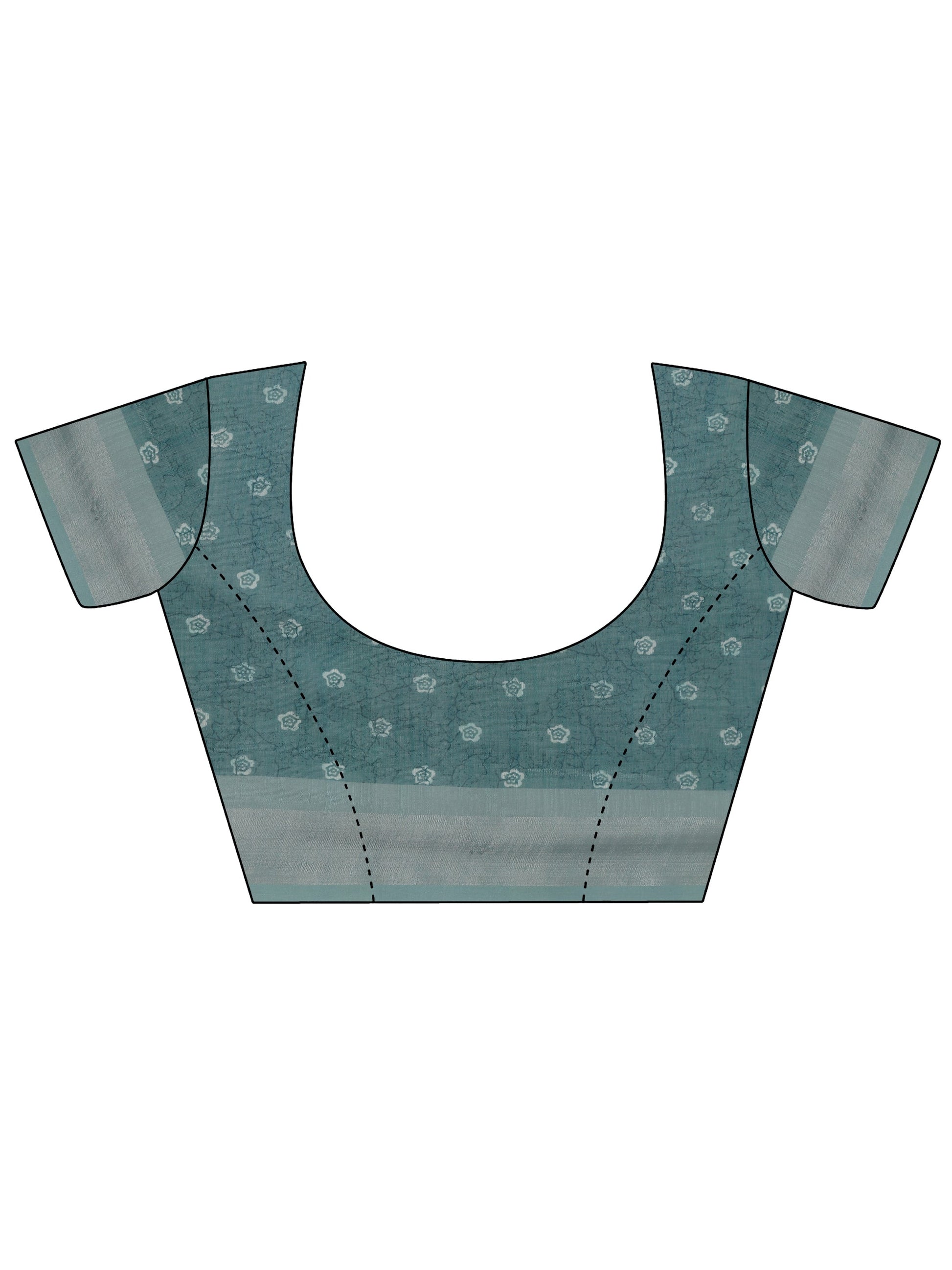 Our Teal Printed Cotton Blend Saree Features Captivating Top Print. Complemented With An Unstitched Blouse Piece. This Charming Saree Is Perfect For Casual Wear