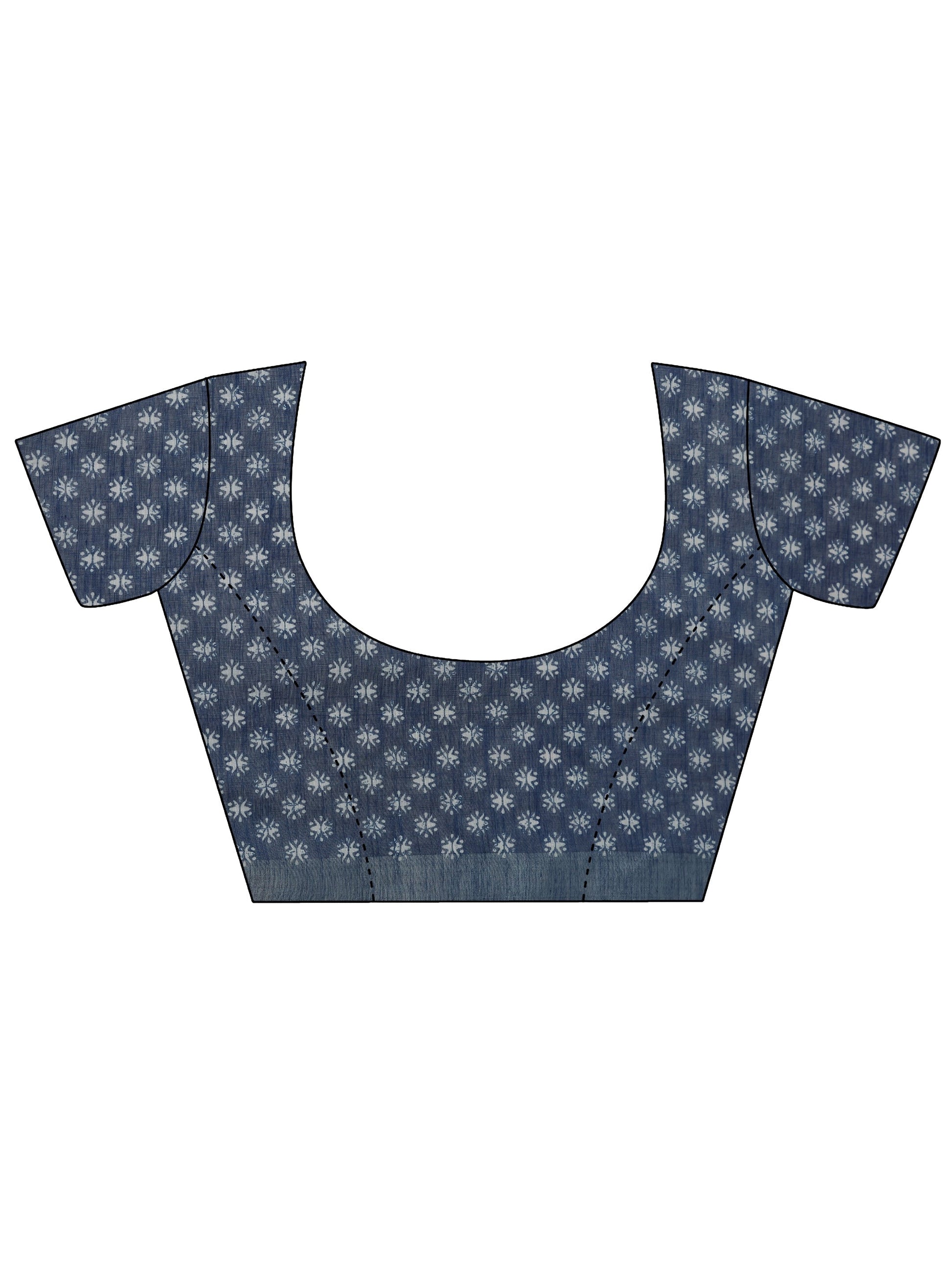 Blue Printed Cotton Blend Saree With Unstitched Blouse Piece