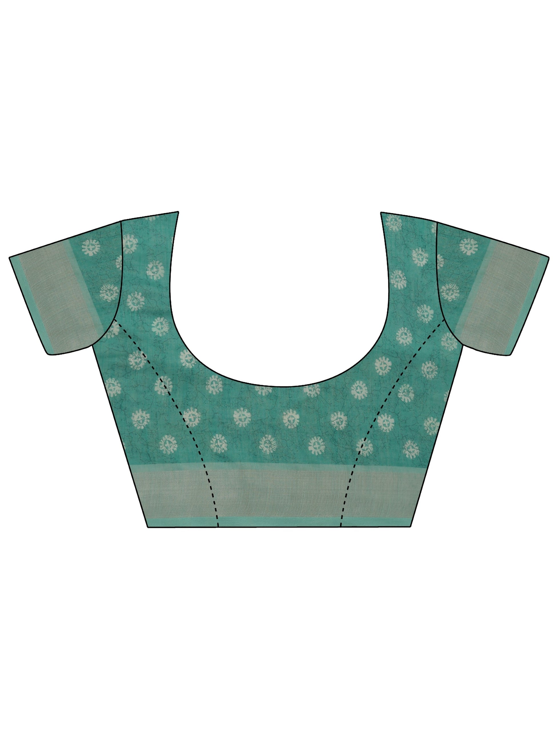 Our Turquoise Blue Printed Cotton Blend Saree Features Captivating Top Print. Complemented With An Unstitched Blouse Piece. This Charming Saree Is Perfect For Casual Wear.