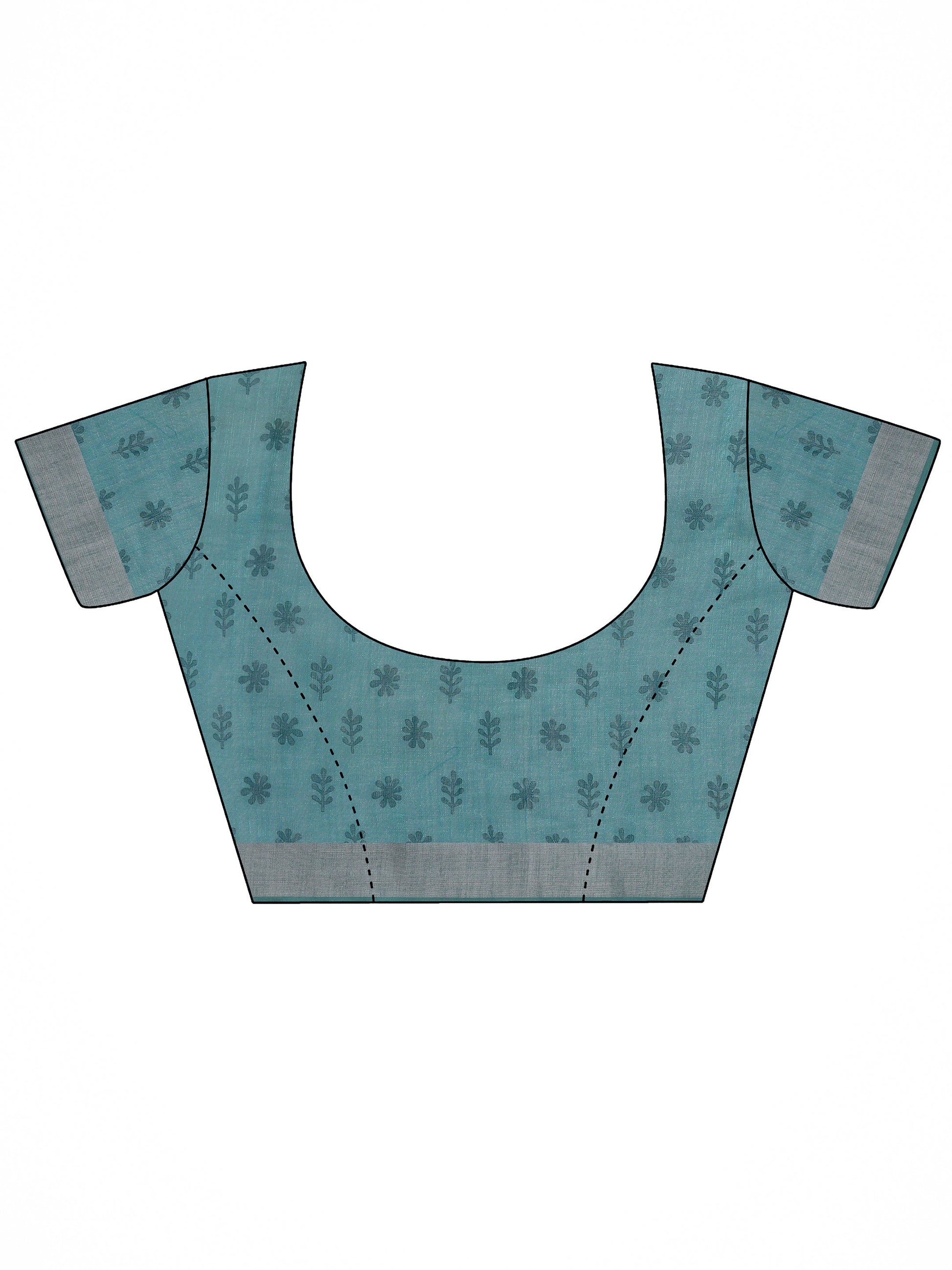 Our Turquoise Blue Printed Cotton Blend Saree Features Captivating Top Pattern Print. Complemented With An Unstitched Blouse Piece. This Charming Saree Is Perfect For Casual Wear