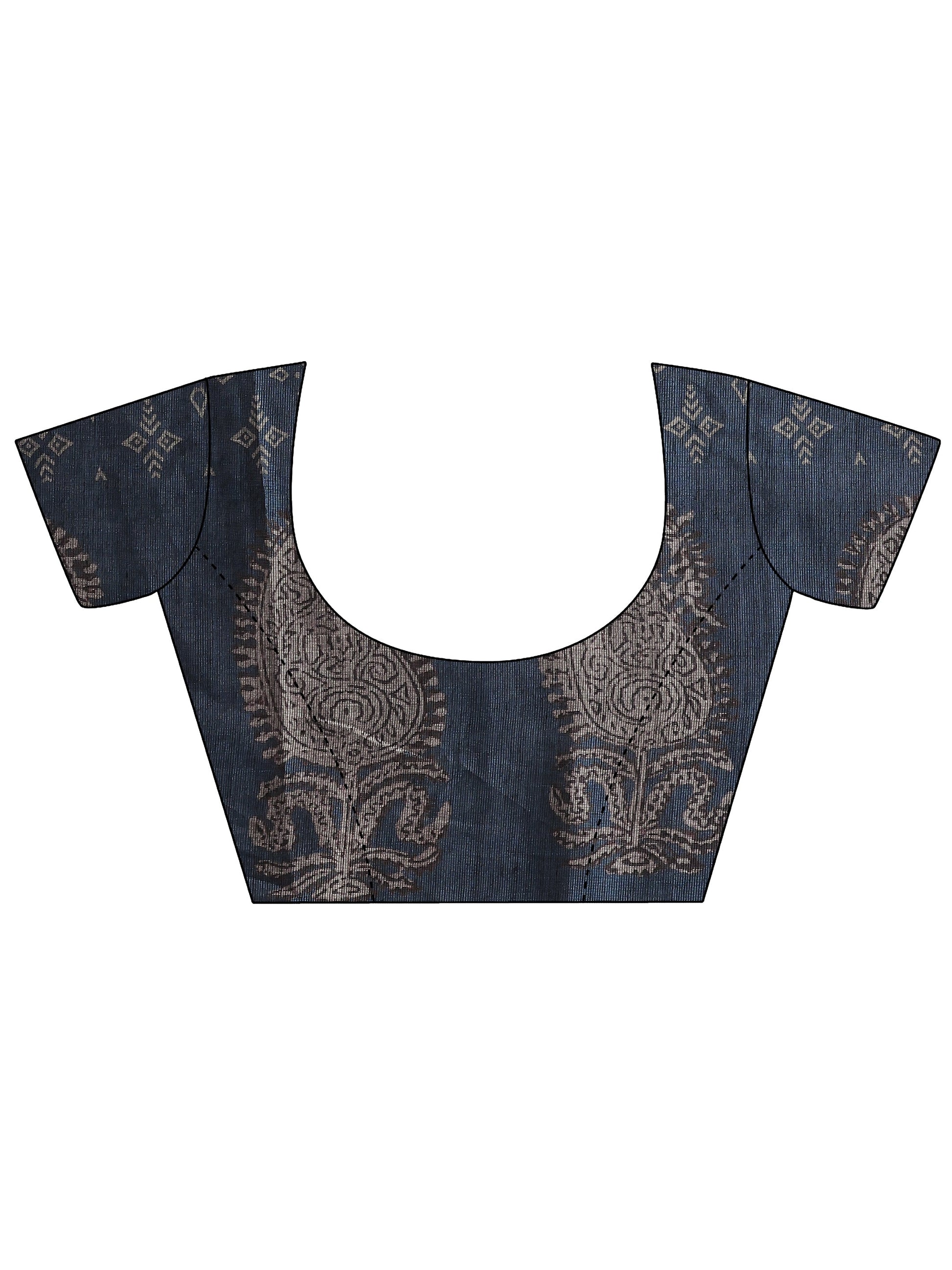 Blue Printed Cotton Blend Sarees With Unstitched Blouse Piece