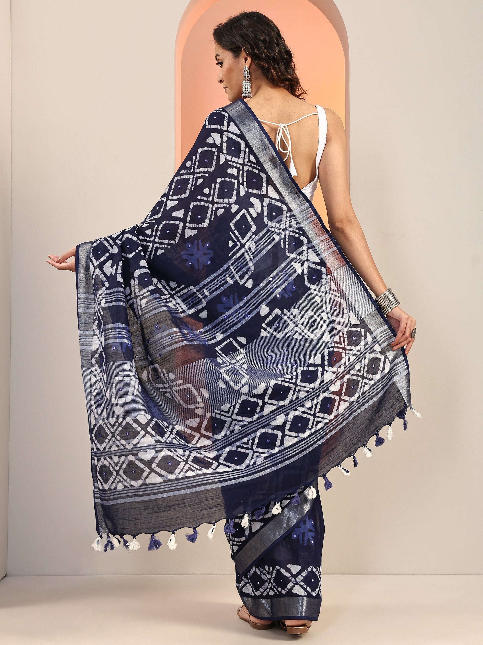 Our Navy Blue Printed Cotton Saree Features Captivating Abstract Printed Design. Complemented With An Unstitched Blouse Piece. This Charming Saree Is Perfect For Festive Wear